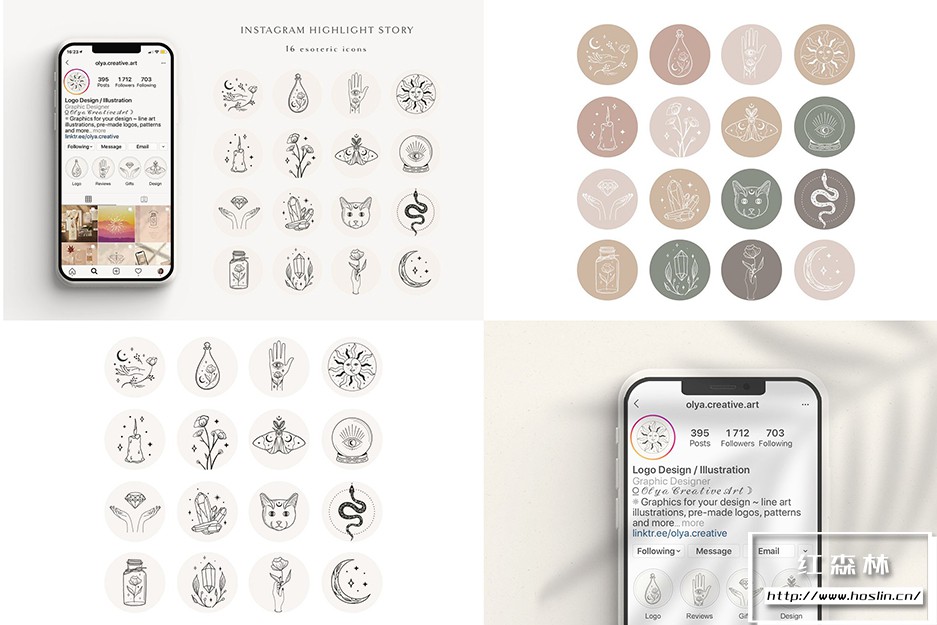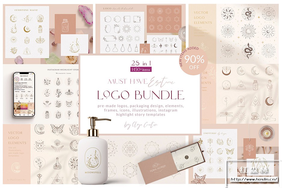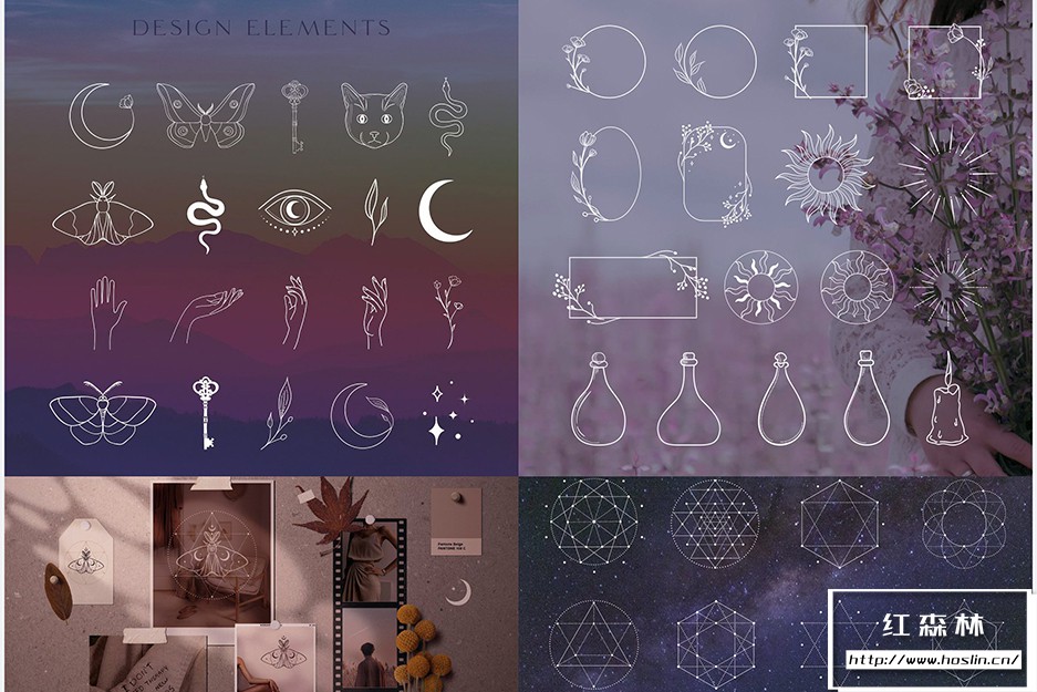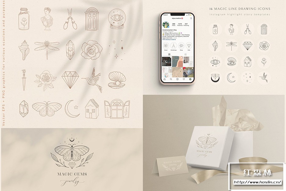 设计师的梦想 – 魔法设计、装饰元素、徽标模板、图标、插图、无缝图案、Ins故事突出显示图标和模板等等。