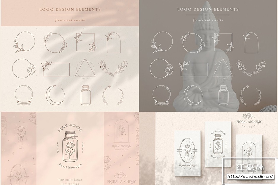 28合1 ~ 1450+ 线条艺术图形元素 。预制徽标和包装设计、徽标元素、插图、Ins 故事突出显示图标和模板、无缝图案、几何和花卉框架等等!