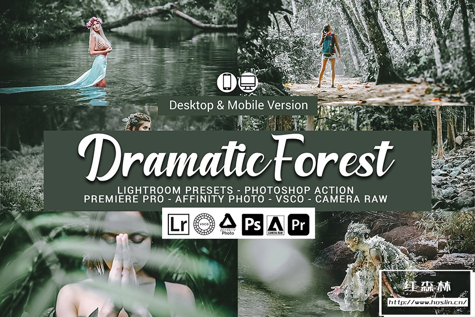 关于产品:20 个戏剧森林桌面和移动预设、Affinity Photo预设、Adobe Premiere Pro预设、Photoshop 动作、vsco 预设、Lightroom 预设。