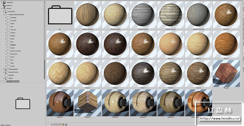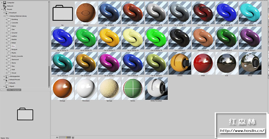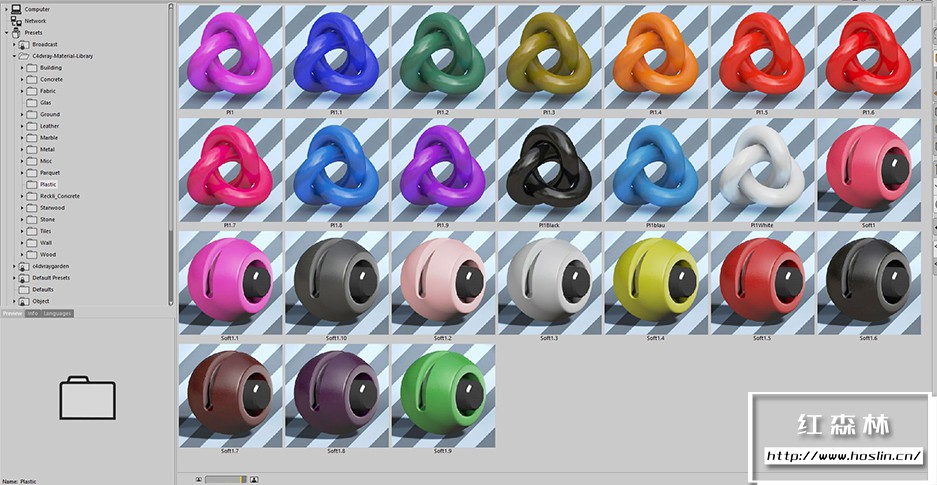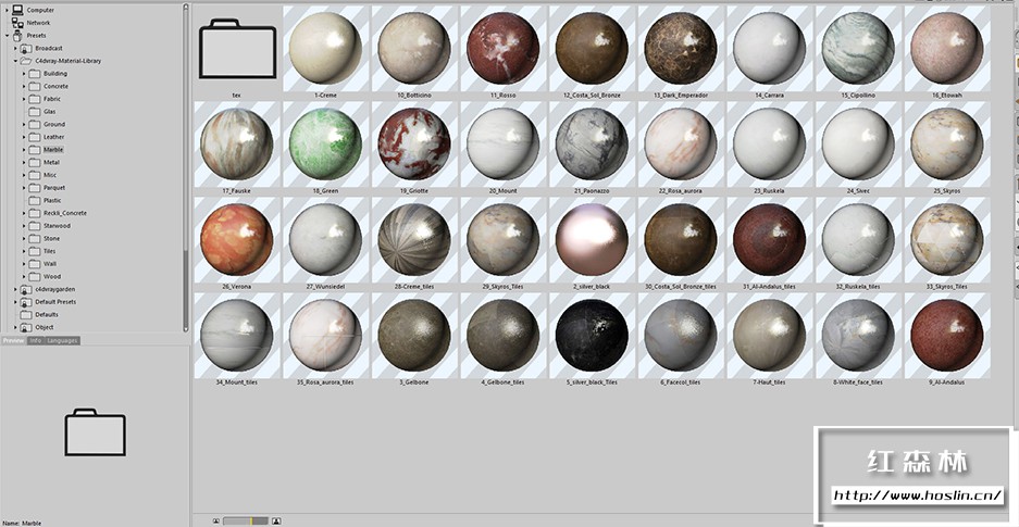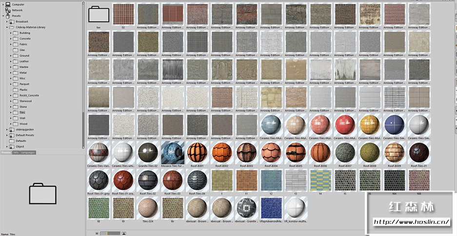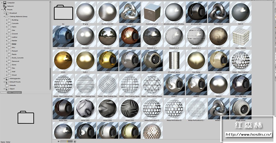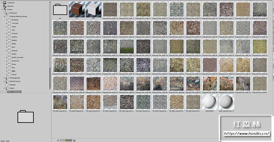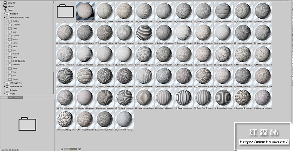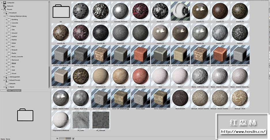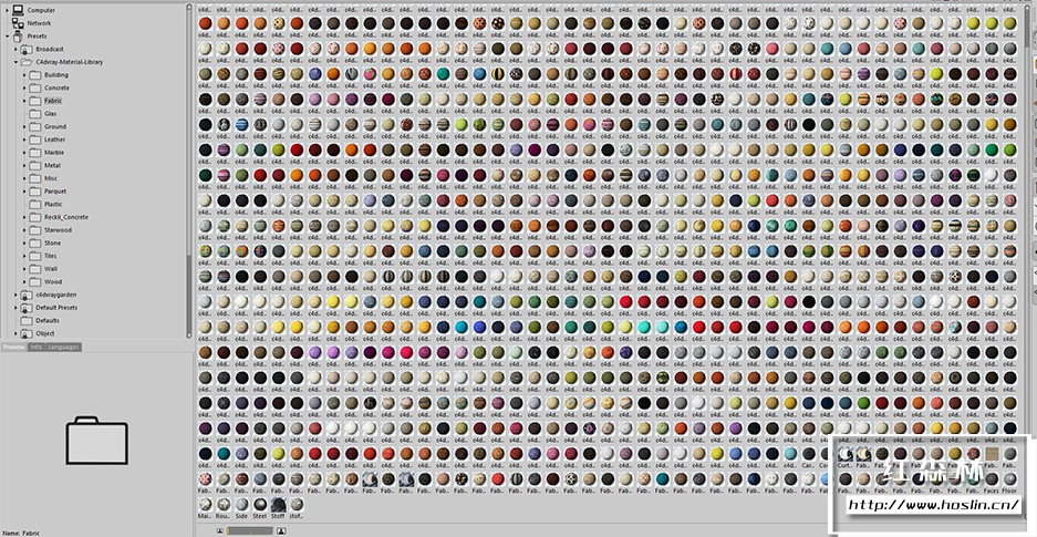 用于 vrayforc4d 的大型材质库 – 大约 2000 种材质。