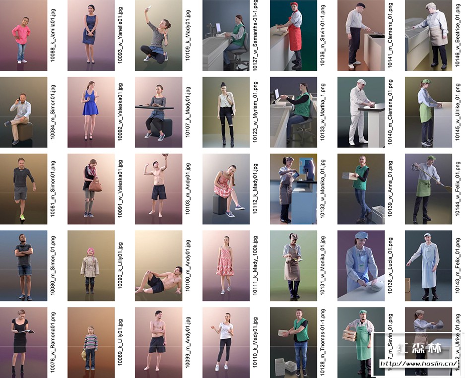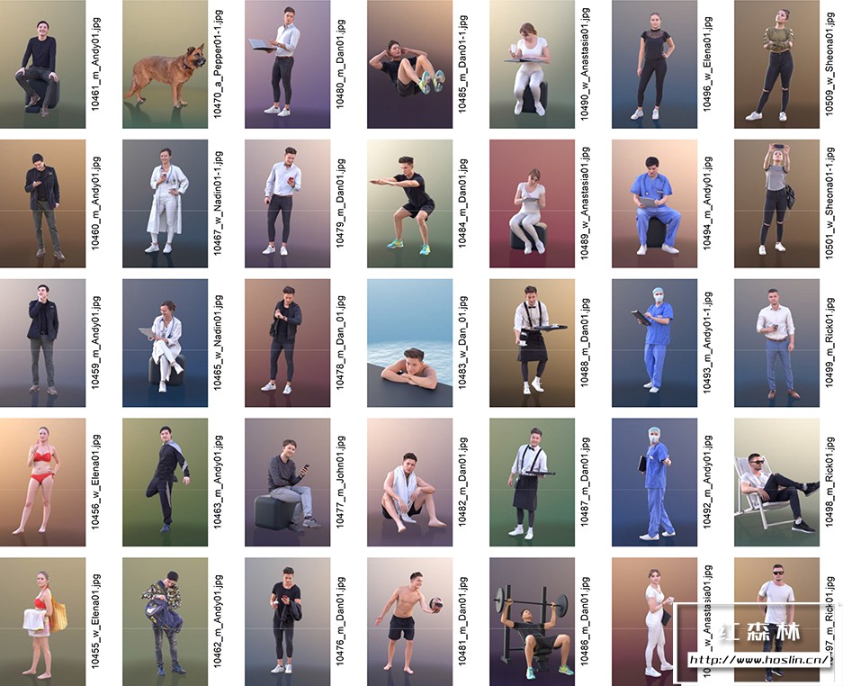 有厨师、小孩、小男孩、小女孩、划龙舟的人、盘腿坐着的人、打电话的人、聊天的人、踢足球的学生、销售员、服务员、快递员、健身的人、男人、女人、白领、戴口罩的人、购物的人、开车的人、摄影的人、拍照片的人、自拍的人、圣诞老人、买菜的人、工程师、技术员、老太太、老大爷、打球的人、喝咖啡的人、弹吉它的人、狗、医生、办办室的人、电脑前的人等。