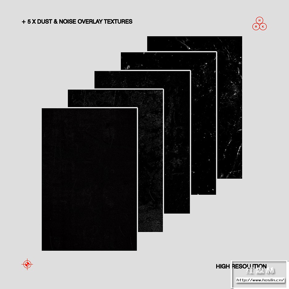 - + 5 种灰尘和噪音叠加纹理(.PSD 和 .JPG)