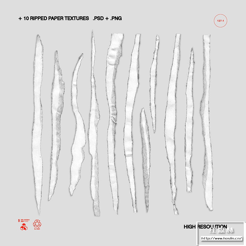 - + 10 个撕裂纸张纹理(.PSD 和 .PNG)