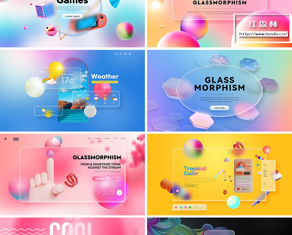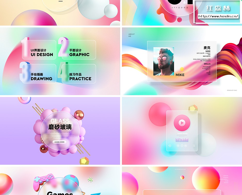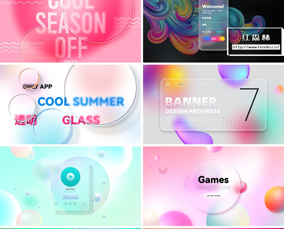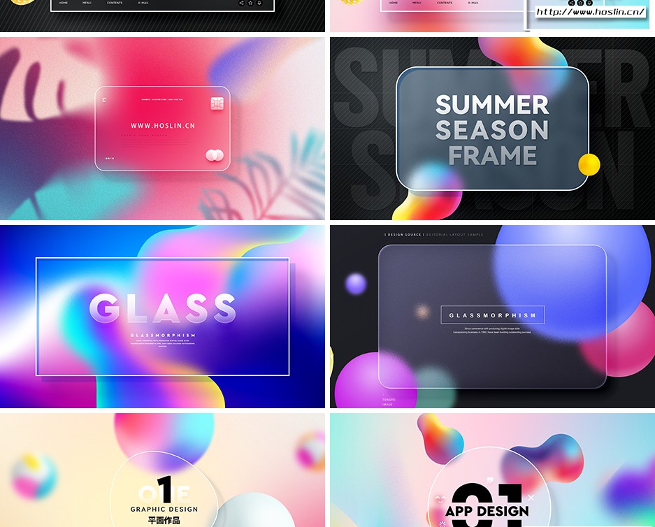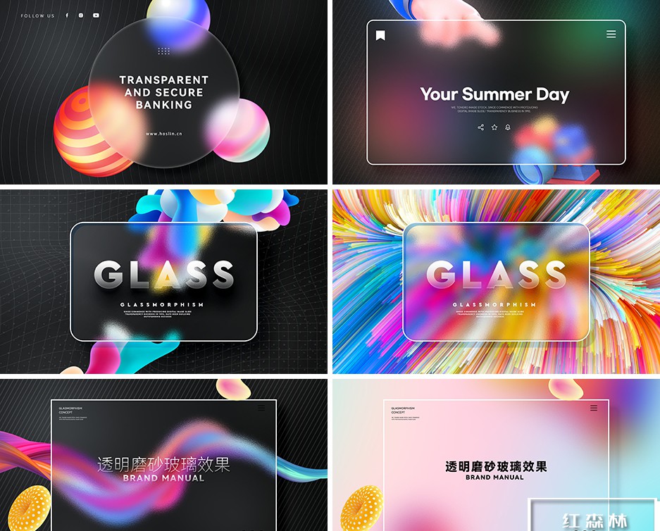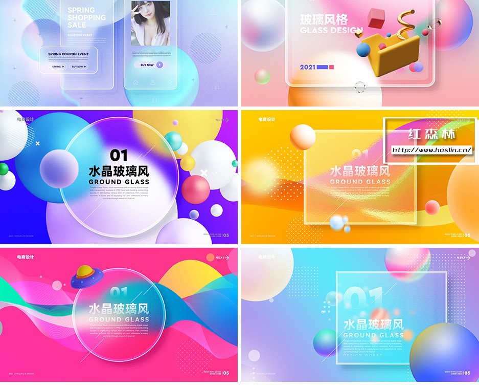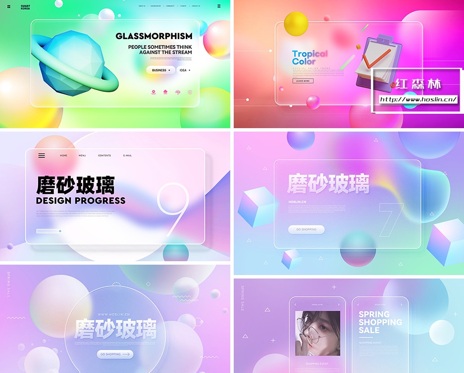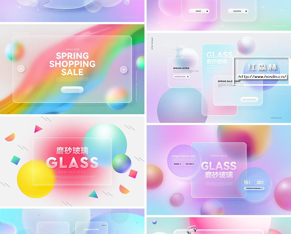 彩色透明磨砂玻璃PSD模板