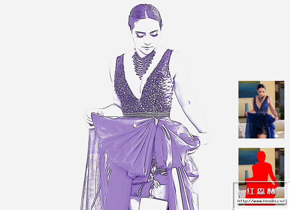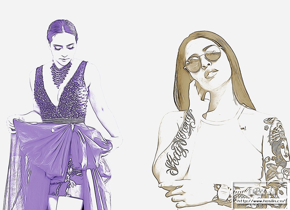 关于产品:油画轮廓素描PS动作 Oil Outline Sketch PS Action