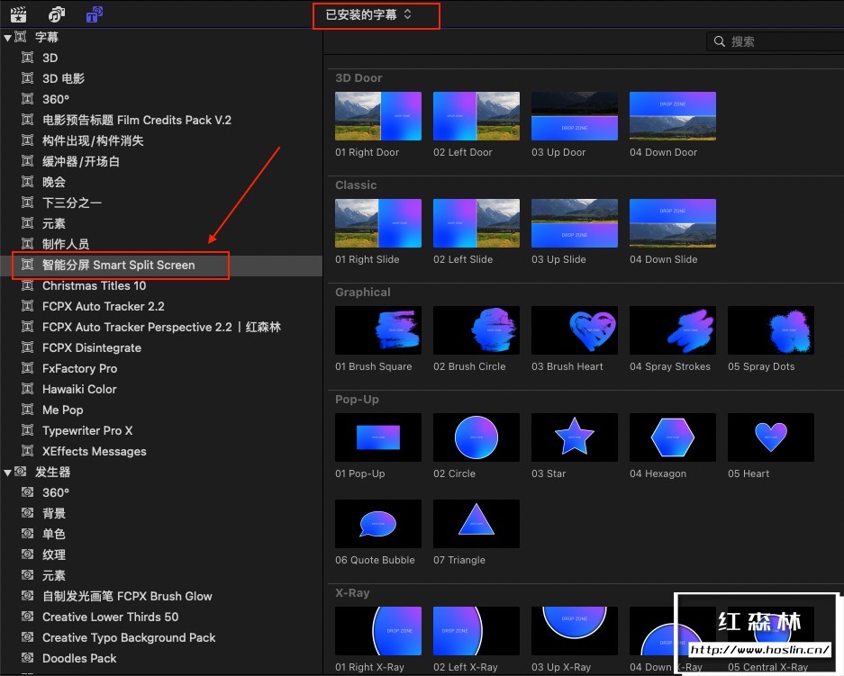 安装方式:点击自动安装到FCPX软件中