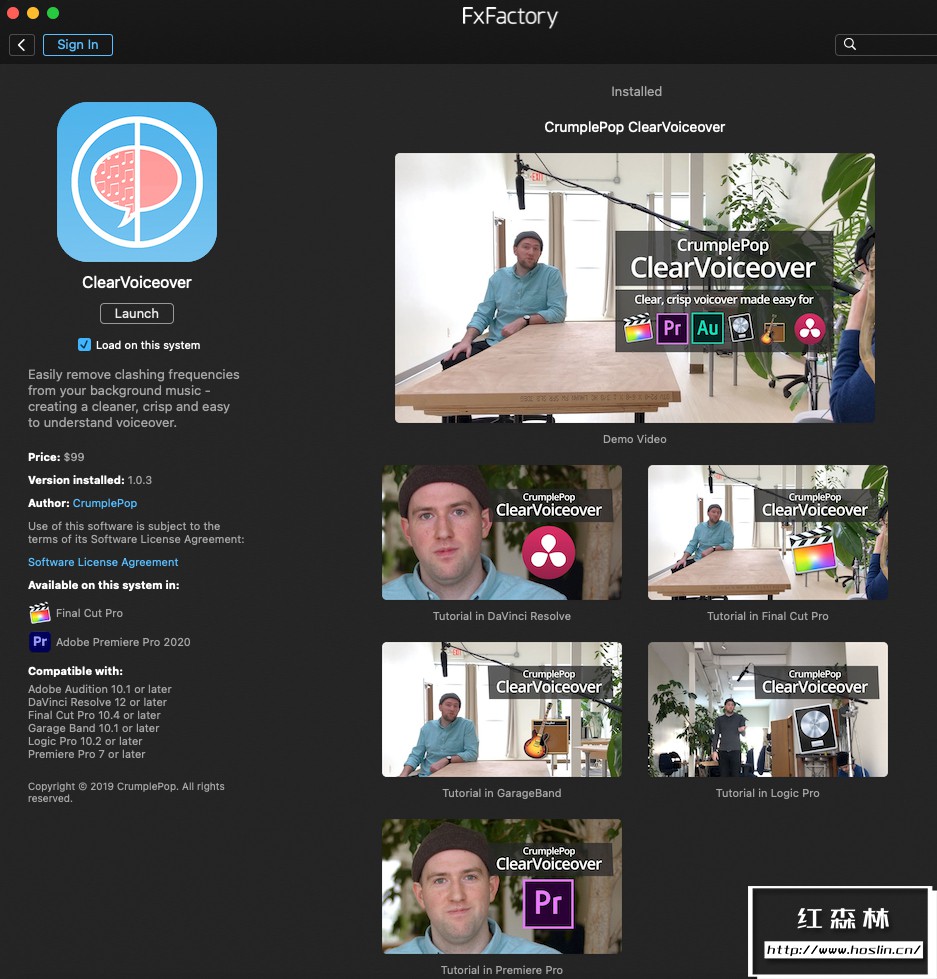 软件要求:Final Cut Pro X 10.4 或更高版本,Premiere Pro 7.0 或更高版本,AU10.1或更高