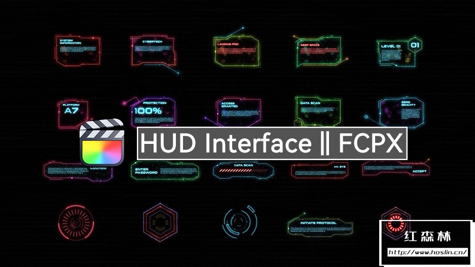 20个可自定义文字添加LOGO科幻HUD屏显动画 HUD Interface 这是一套现代、未来和多彩的科幻题材HUD屏显标题动画,可修改文本,颜色及添加自己的图像内容,特别容易使用,分组和组织。但不具备跟踪功能,支持中英文输入,支持4K。
