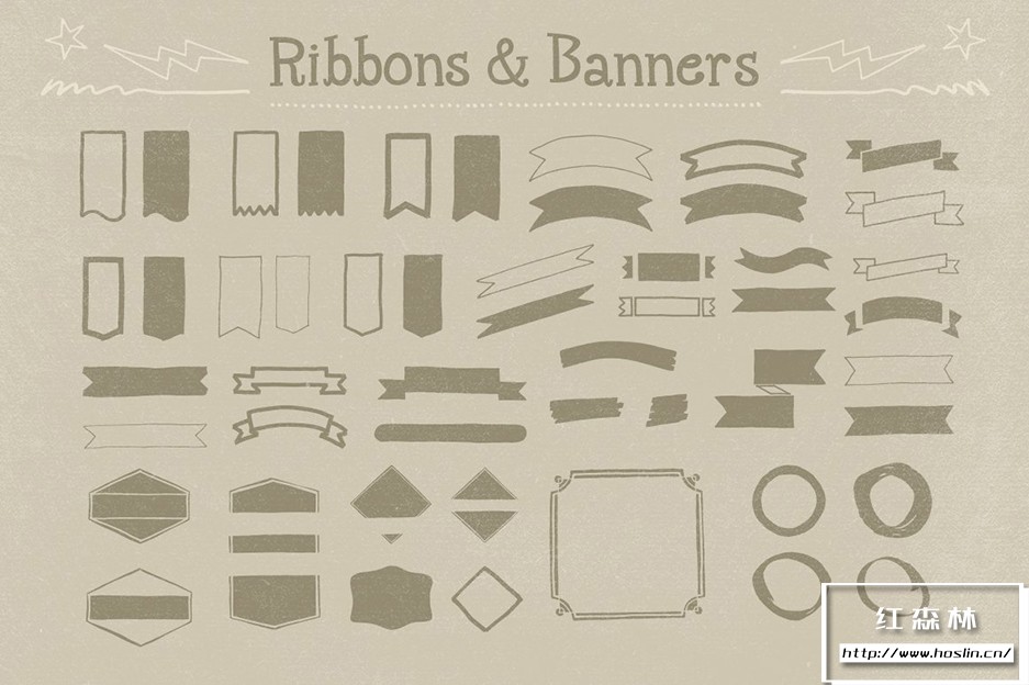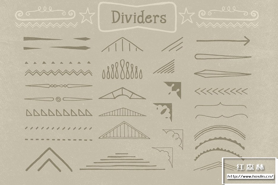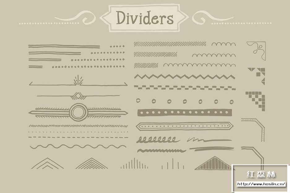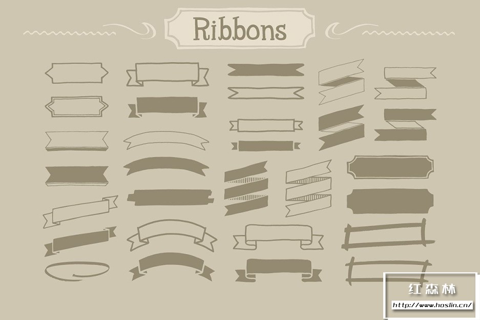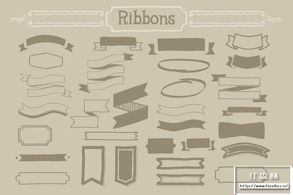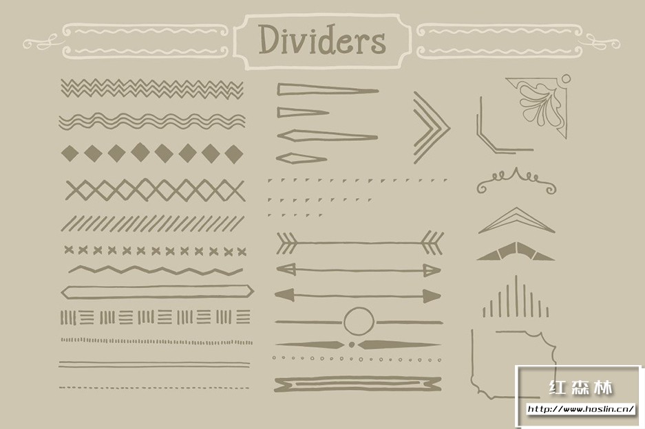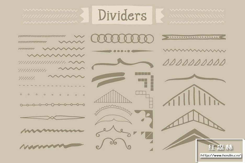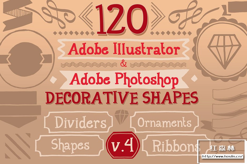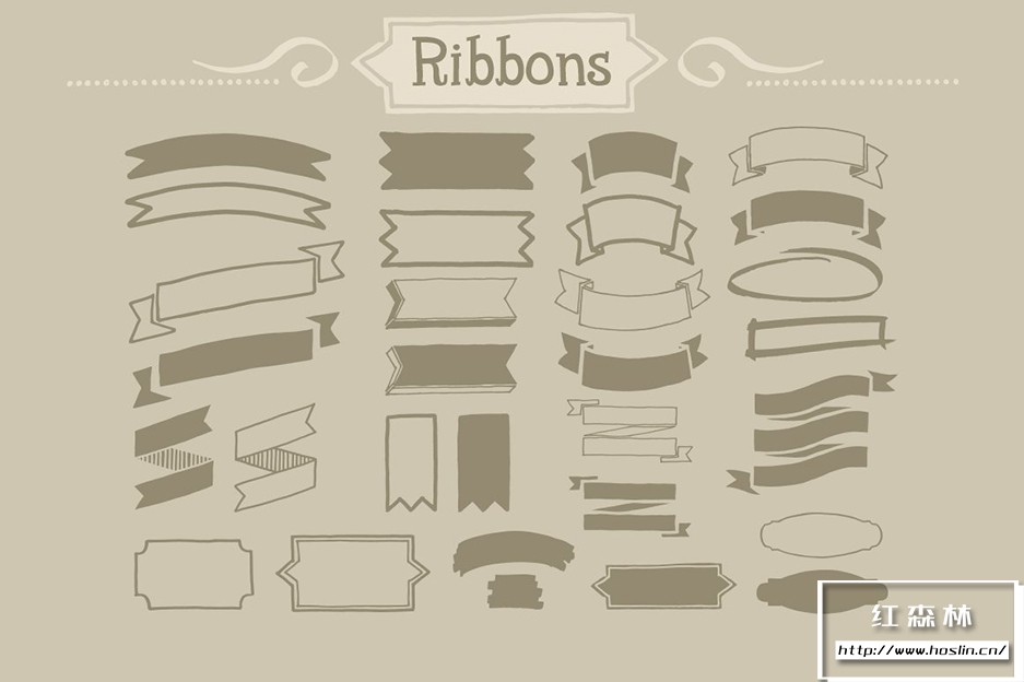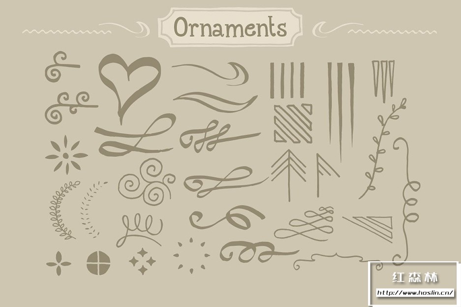 Adobe Illustrator 和 Adobe Photoshop 中的 890 个手写装饰矢量形状(可调整大小的形状)。丝带、分隔线、装饰品和角等形状。