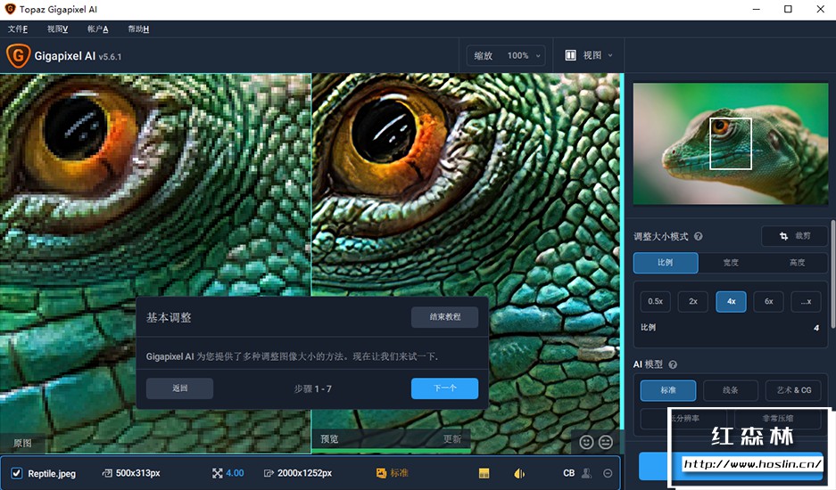 当您将一张低分辨率图像导入 Gigapixel AI 并选择放大倍数(最高可达600%)后,软件并非简单地拉伸像素,而是启动其AI模型进行分析。它会: