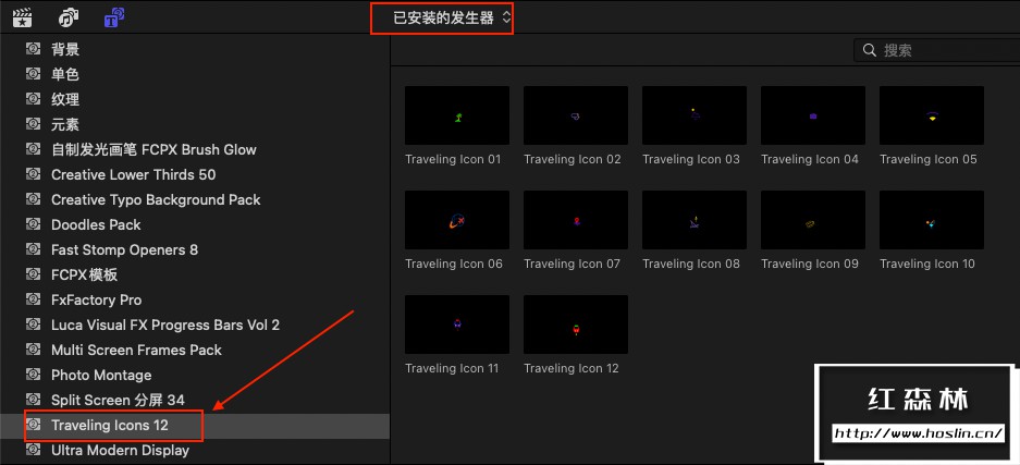安装方式:点击自动安装到FCPX软件中