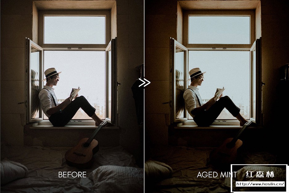 - AGED MINT – 复古凉爽的绿色预设,带有温暖的电影底色