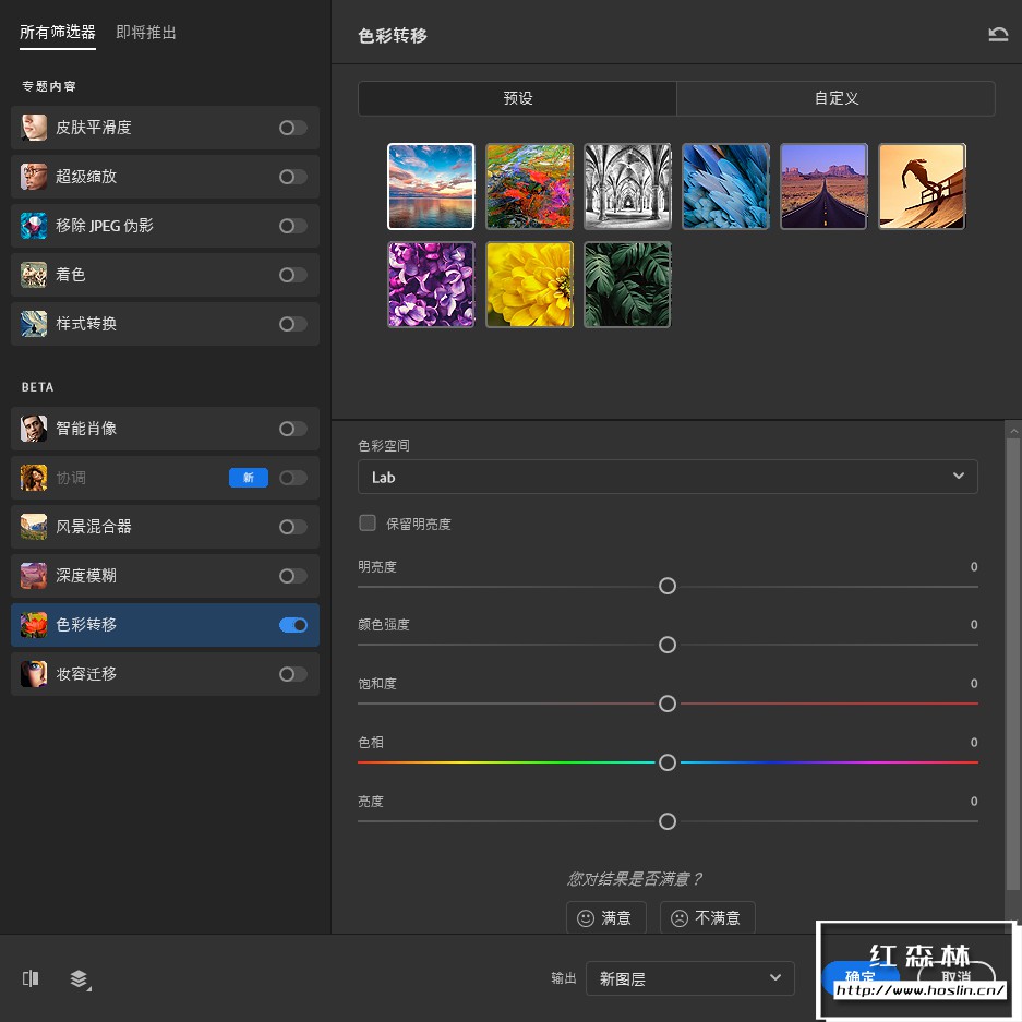 - 注意:此滤镜不同于我们常用的其他滤镜插件是通过本机处理,它是需要在线连接到Adobe 的官方远程服务器云端处理后返回数据到我们的PS,而他们的官方服务器又在国外,有时候滤镜出现异常,大多数是网络原因,也可能是官方原因,如果你网络连接国外比较好,出错几率就很小。