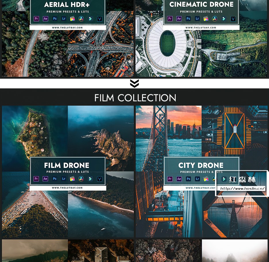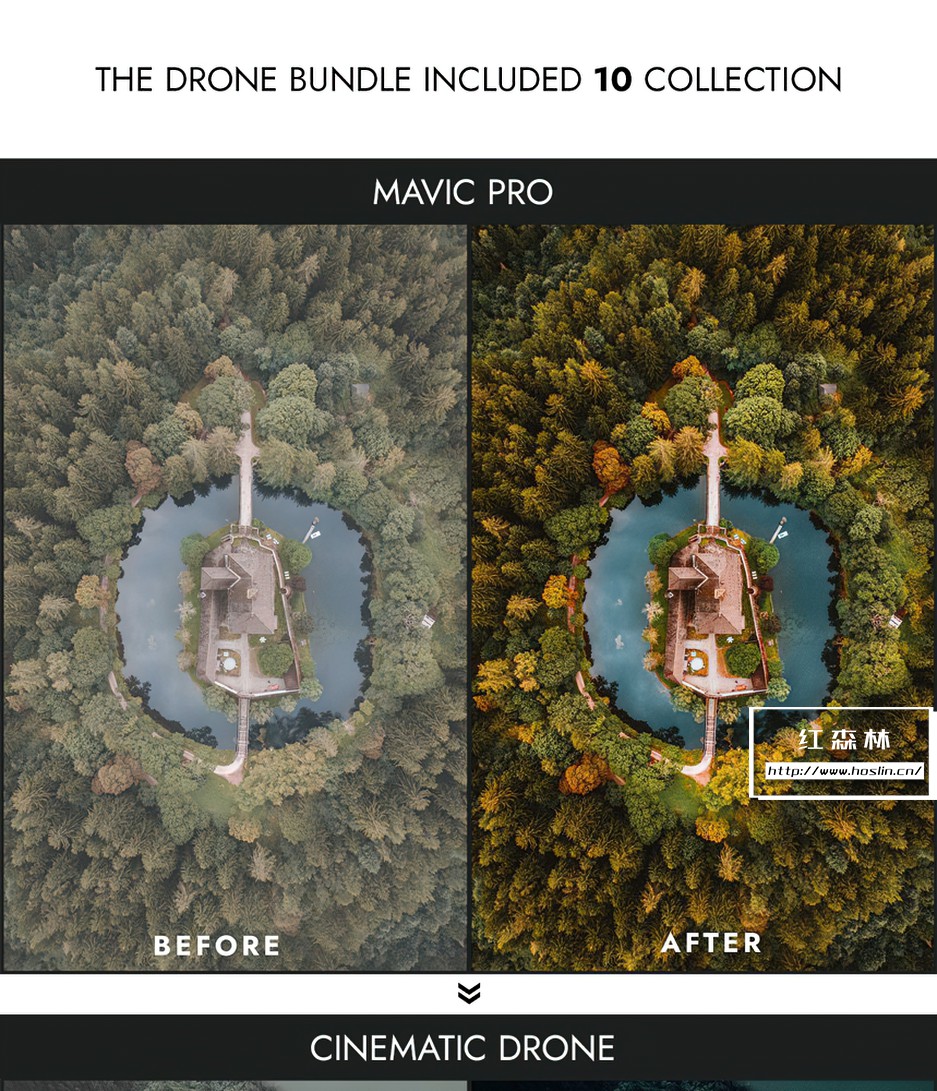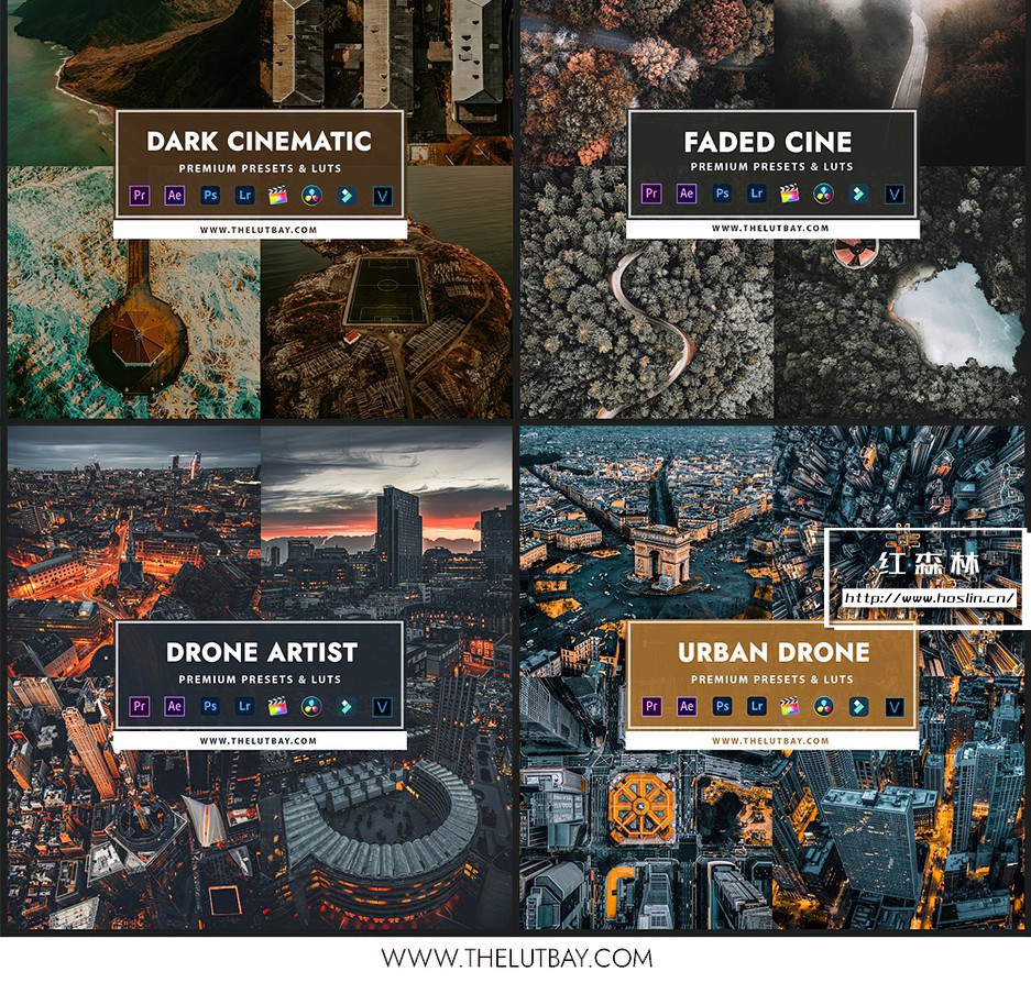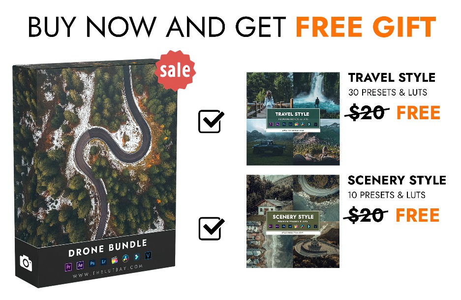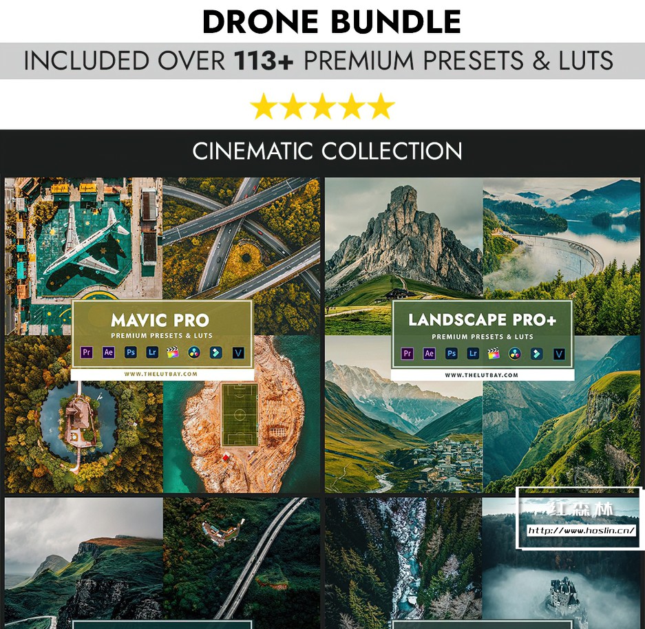 Drone bundle Collection 包括照片预设和视频预设,适用于处理 RAW 和 JPEG 图像,处理 S-Log、Slog2、D-log、F-log 等…