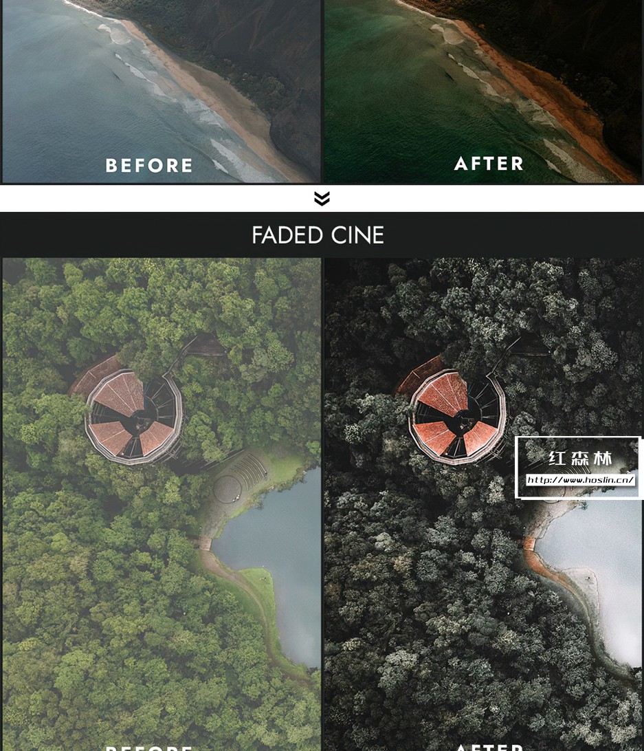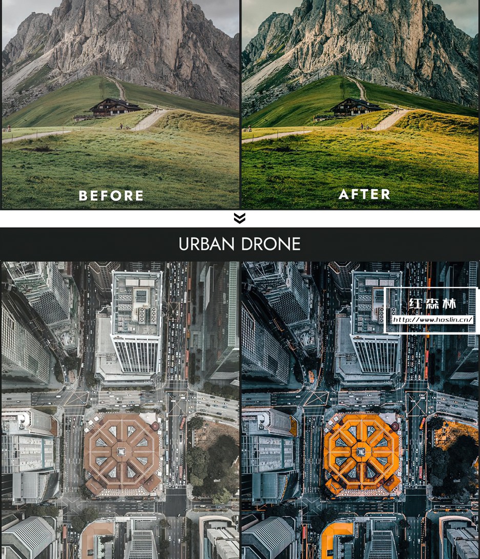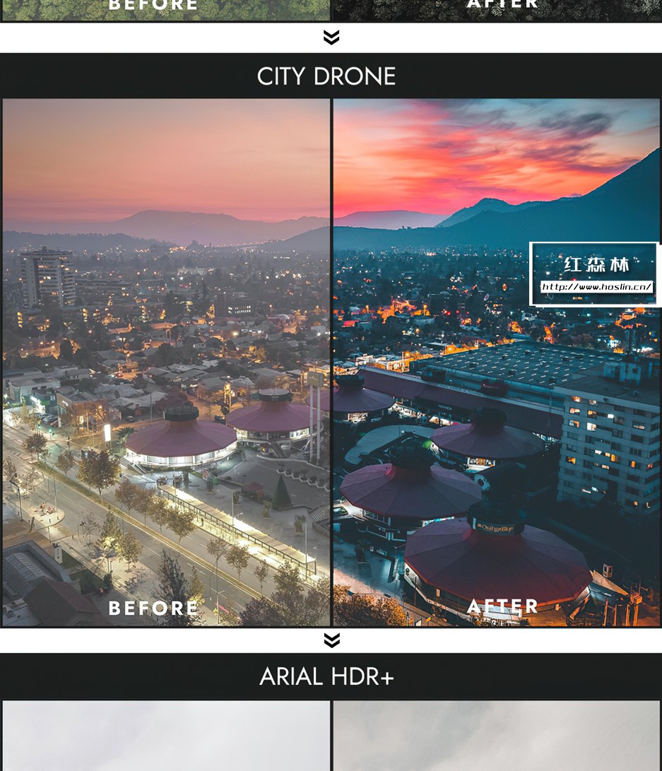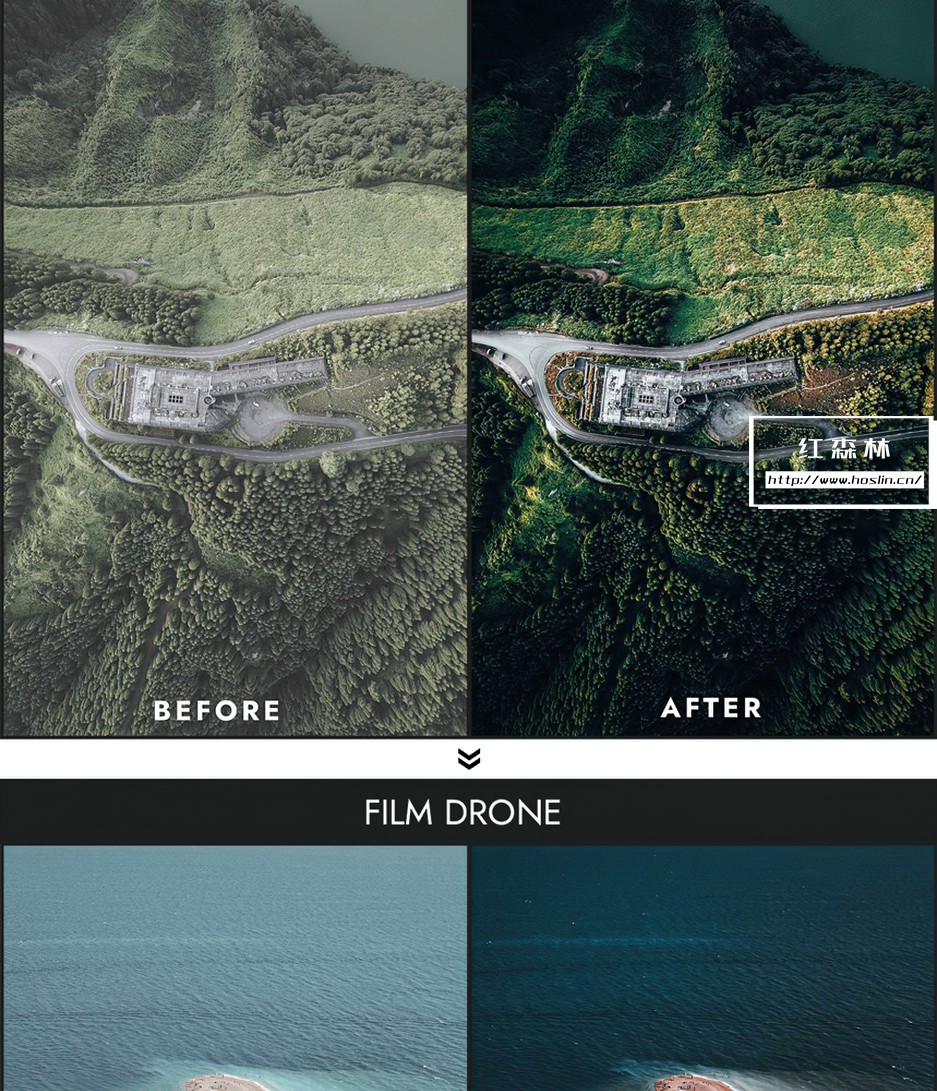 Drone bundle Collection 包括照片预设和视频预设,适用于处理 RAW 和 JPEG 图像,处理 S-Log、Slog2、D-log、F-log 等…