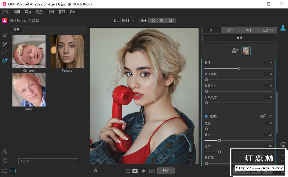 改善面部:通过添加补光来变亮脸部或重塑脸部以使下巴变细或平衡眼睛大小,以纠正镜片选择和照明中的常见错误。