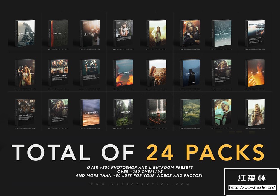 超过 300 个 Photoshop 和 Lightroom 预设,超过 +250 个叠加层以及超过+50 个 LUT。