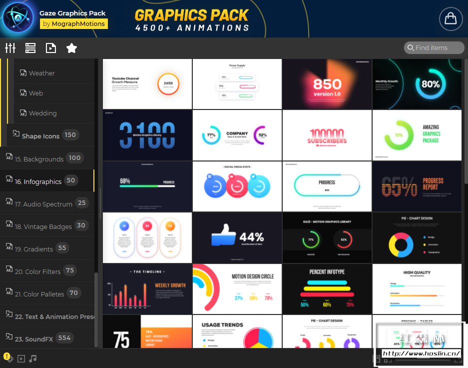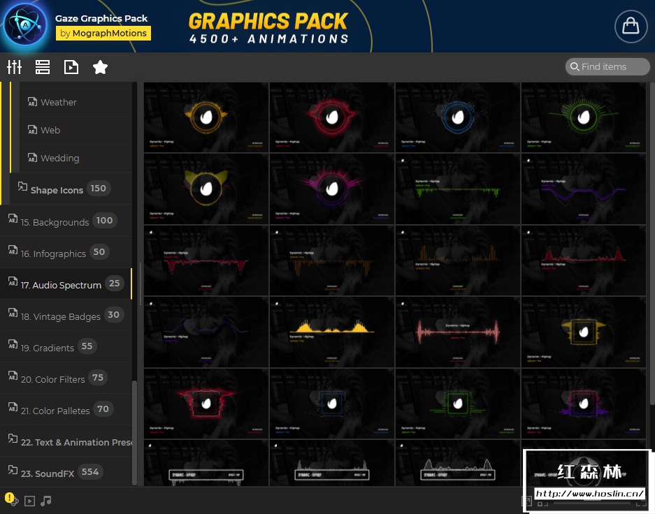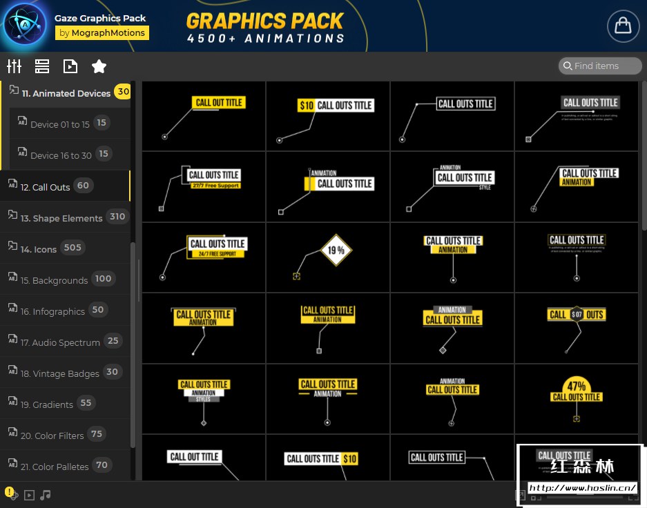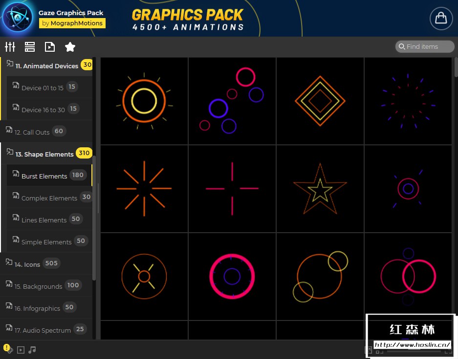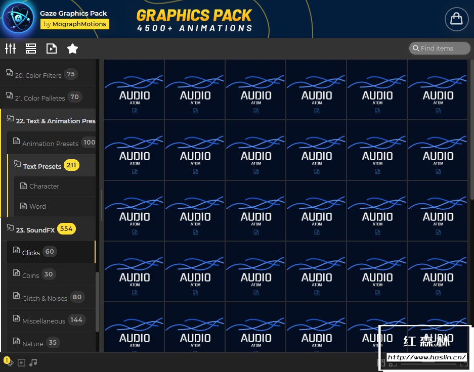 Gaze图形库是唯一包含4500多个即用型元素和预设的设置和效果工具包,只需单击几下即可将您的内容变成杰作。为了获得更直观、更快速的体验,此图形库还附带了AtomX扩展,通过AtomX脚本调用预设,可视化预览,直接使用于时间线。该扩展程序使用起来非常简单,并且由于该工具包包含大量元素和预设,因此AtomX扩展程序使为正确的工作找到正确的资产变得非常简单。