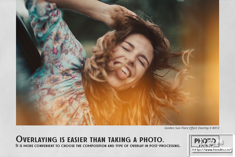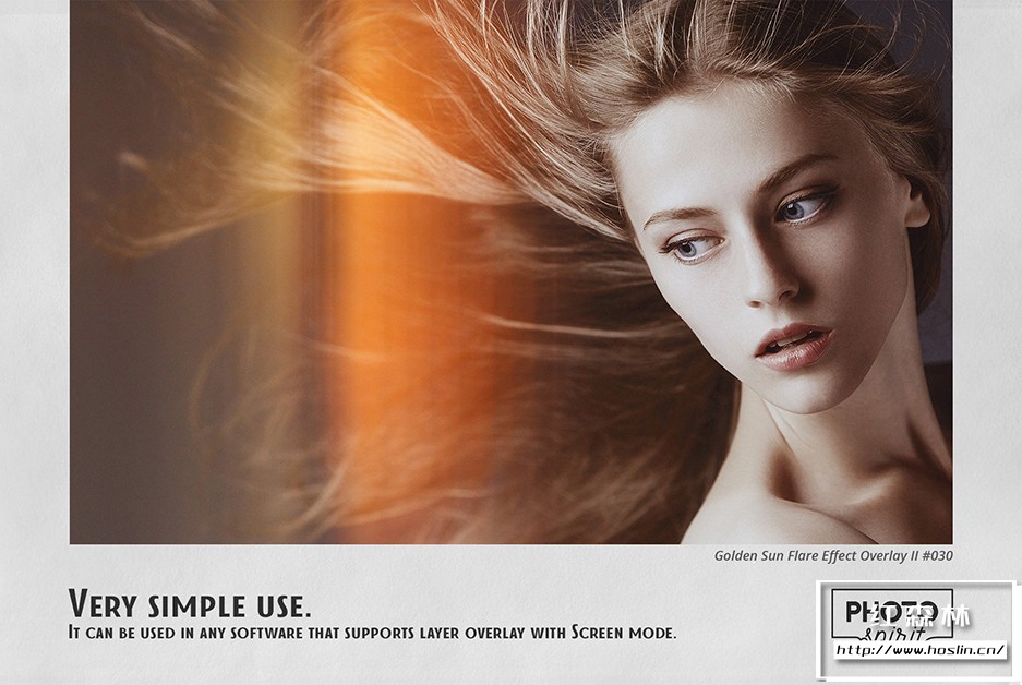 适合业余爱好者和专业人士。彩色和黑白照片效果极佳。为方便起见,添加了用于在屏幕模式中选择和覆盖叠加层的操作。这将适用于 Photoshop 和 Photoshop Elements。Golden Sun Flare 2 叠加可用于任何支持屏幕模式下的图层叠加的图形编辑器。