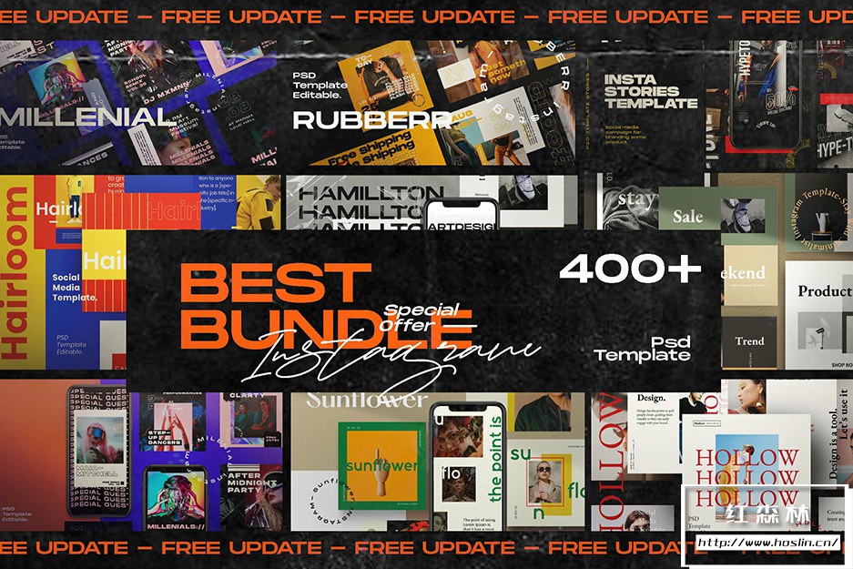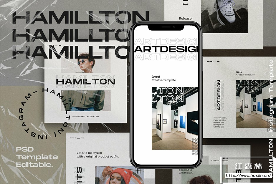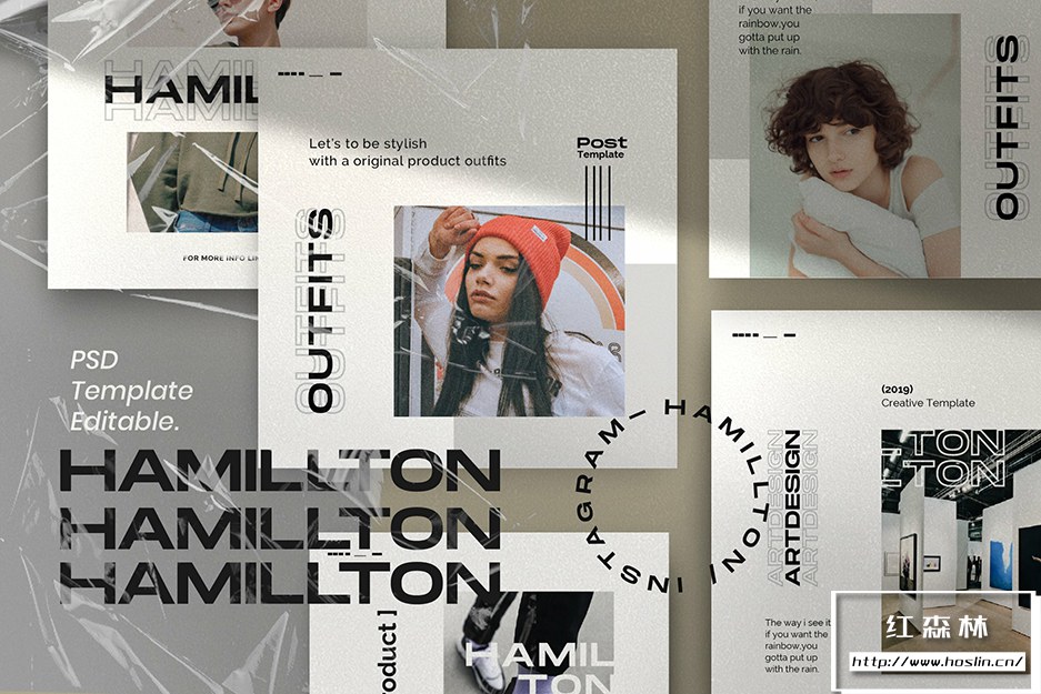 - 3、HAMILLTON – Social Media Pack Bundle 共有40 个 Photoshop 文件,1080×1080和1920×1080分辨率。