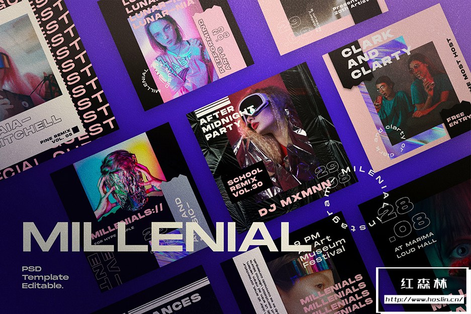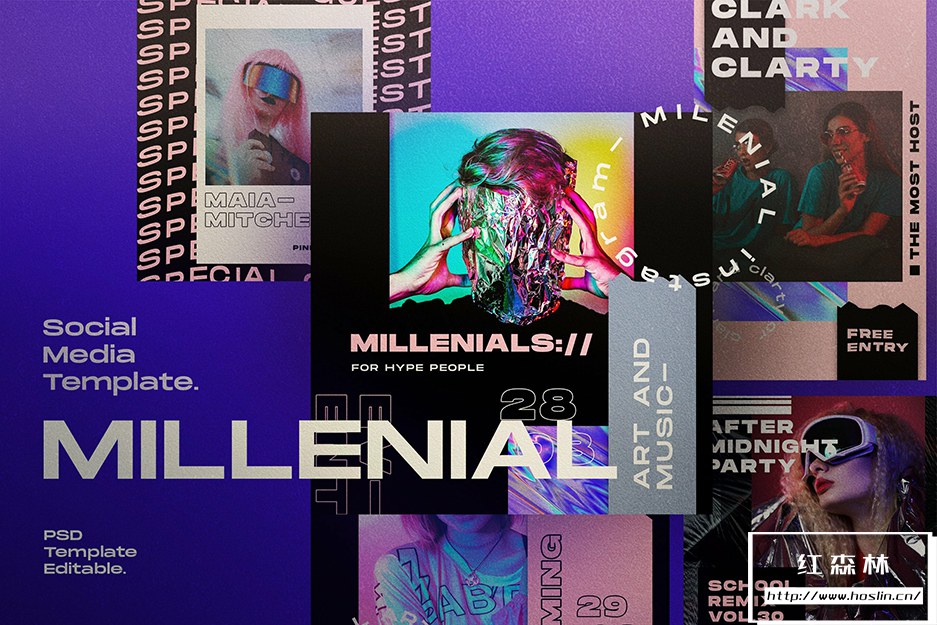 - 11、MILLENIAL – Social Media Template 共有18 个 Photoshop 文件。