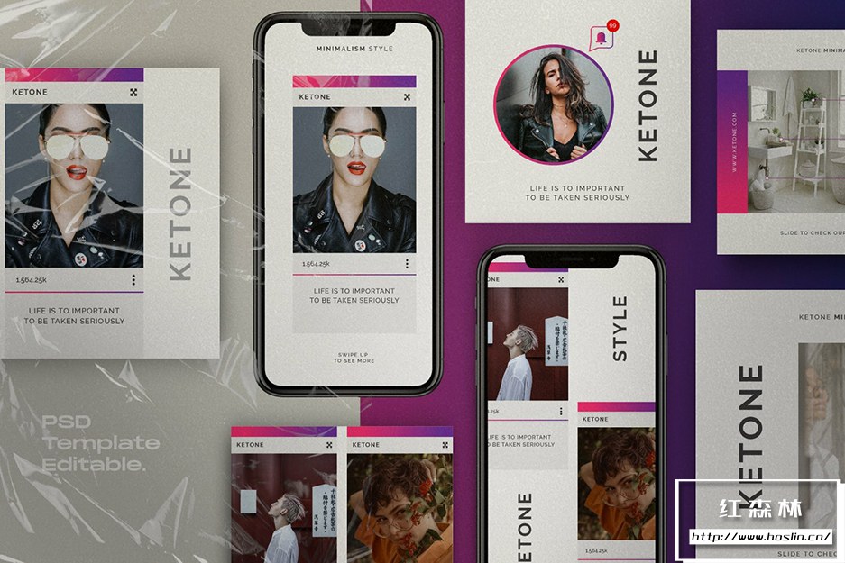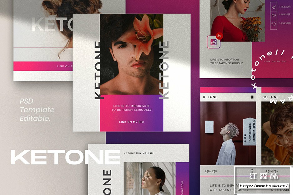 - 7、KETONE – Social Media KIT Bundle 共有40 个 Photoshop 文件,1080×1080和1920×1080分辨率。