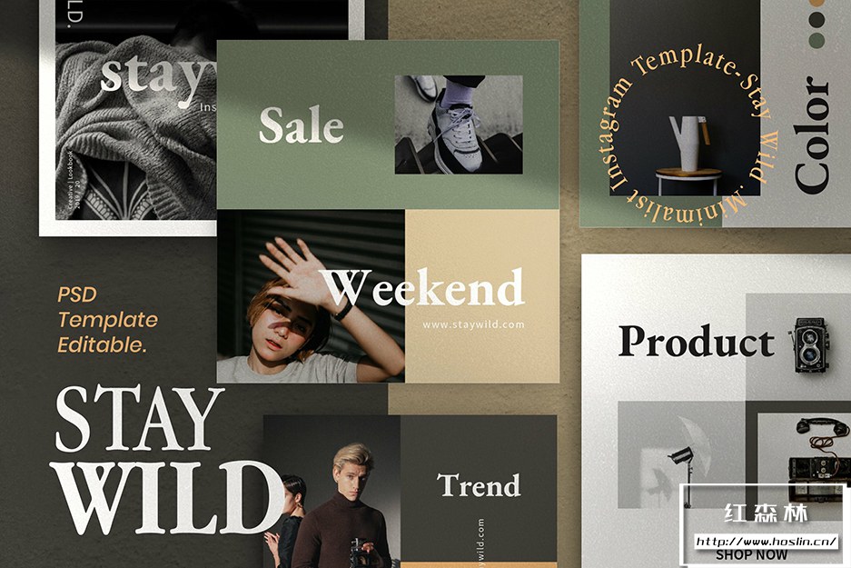 - 12、Staywild – Instagram Pack Bundle 共有40 个 Photoshop 文件,1080×1080和1920×1080分辨率。