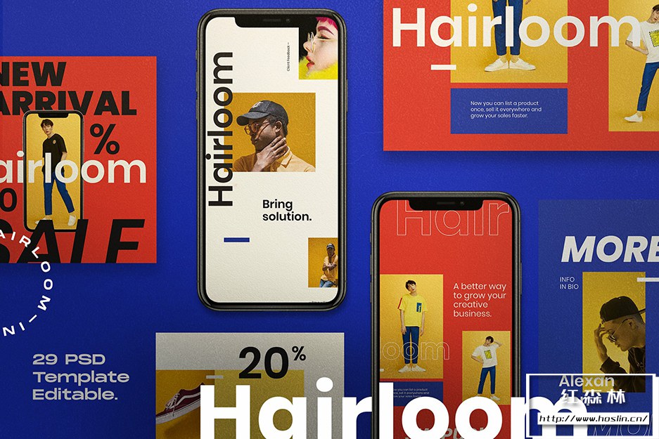- 2、HAIRLOOM-Social Media Template + SG 共有29 个 Photoshop 文件,AI矢量文件可编辑。