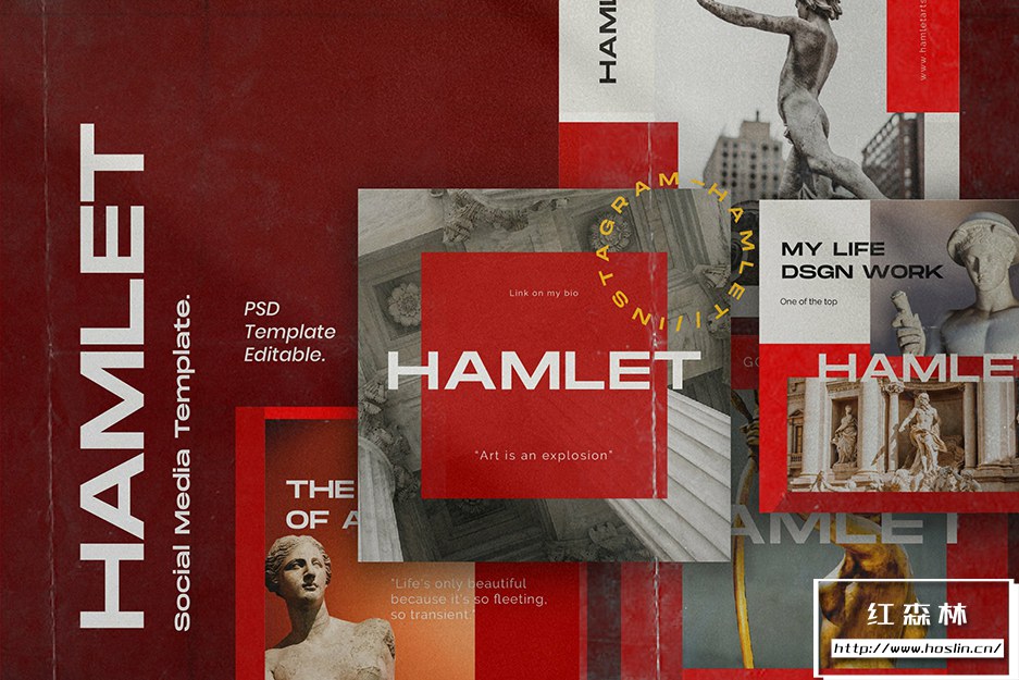 - 4、Hamlet – Social Media KIT Bundle 共有40 个 Photoshop 文件,1080×1080和1920×1080分辨率。