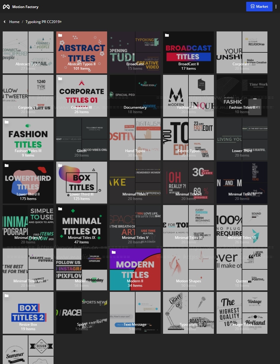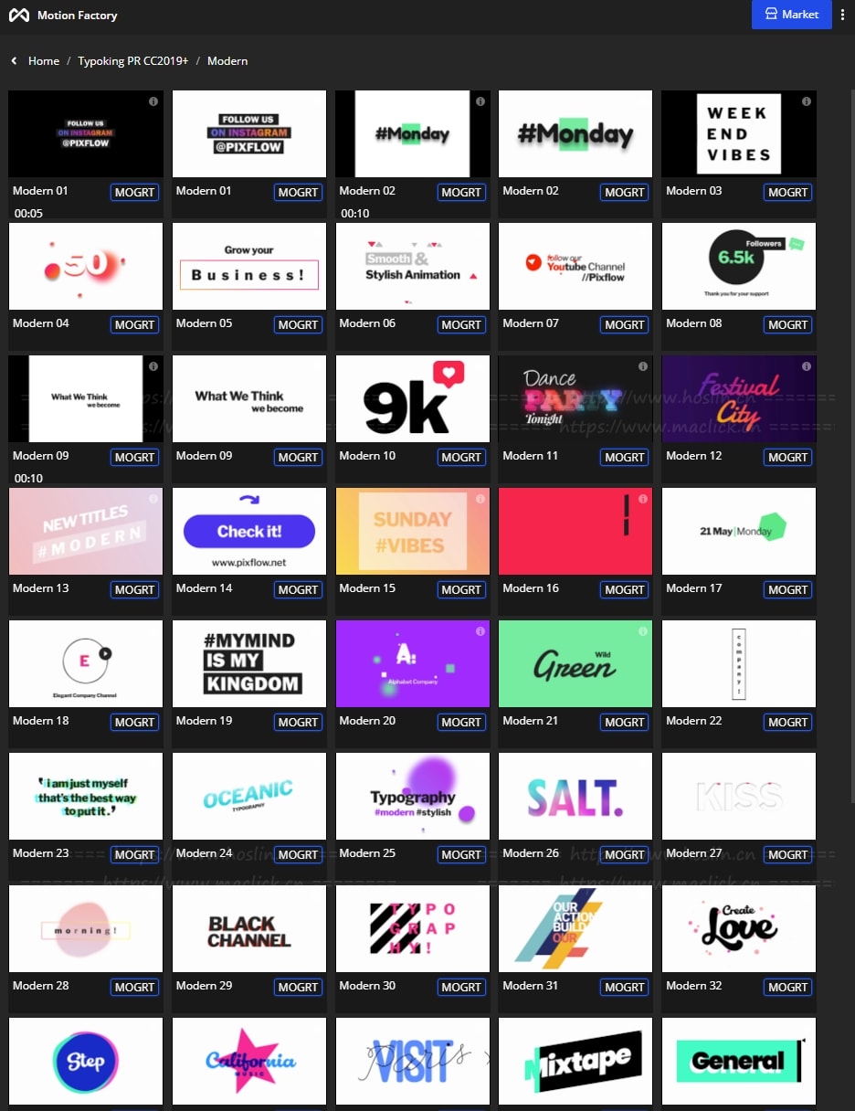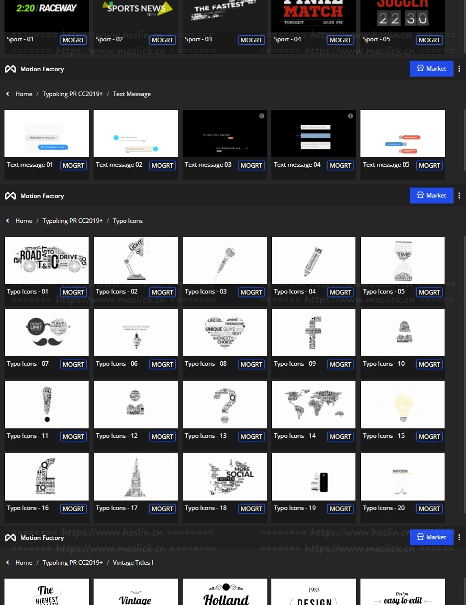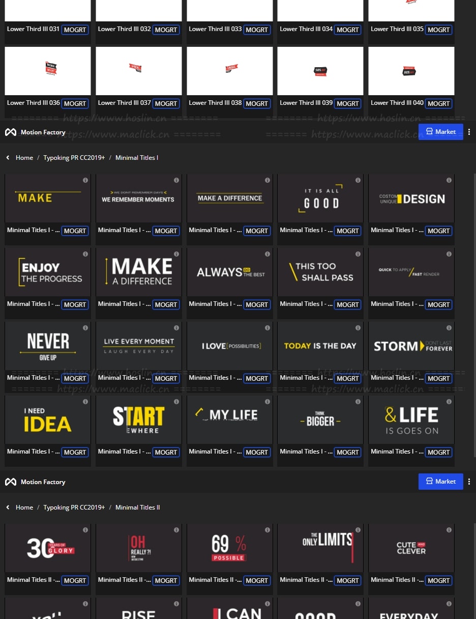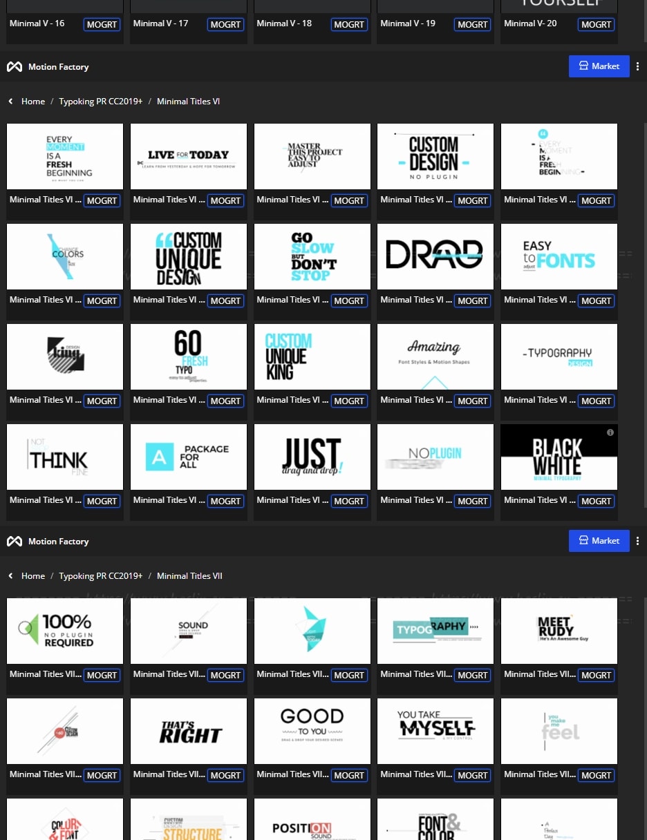 拥有27类超过1122个现代新颖时尚精美个性文字标题排版动画。使用Motion Factory脚本扩展预览,需要什么点击即可,能够修改文字内容和颜色等属性,非常方便。支持4K分辨率,无需插件。包含视频教程。