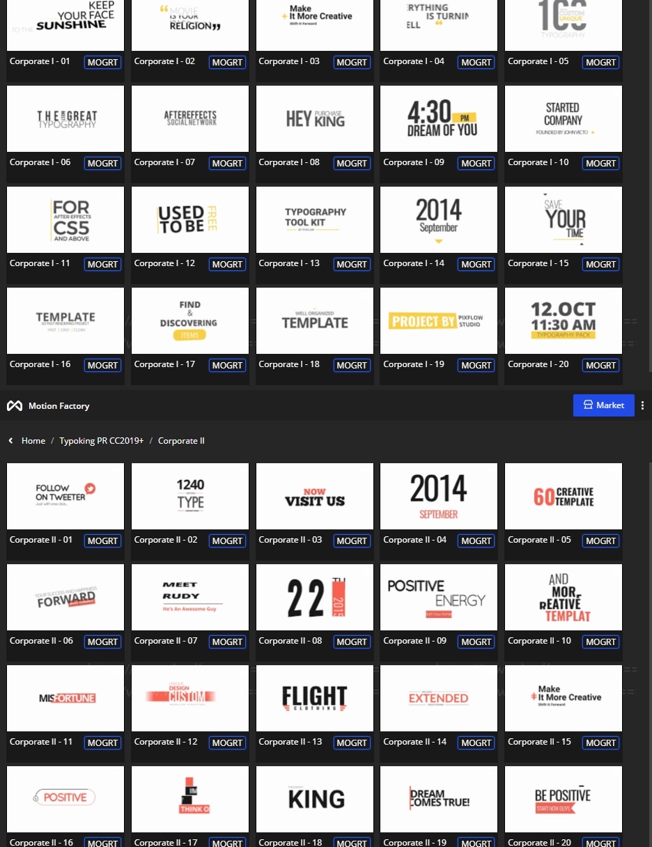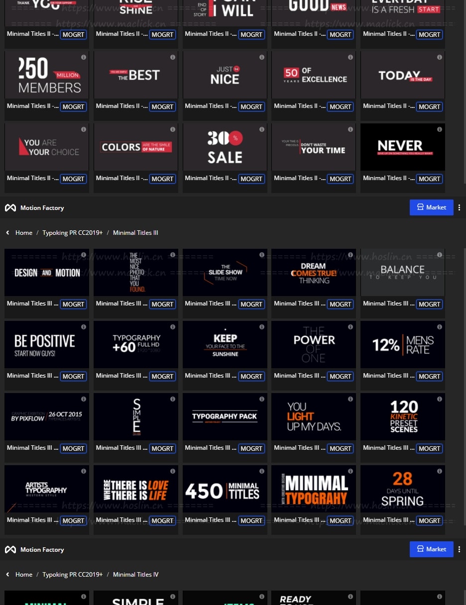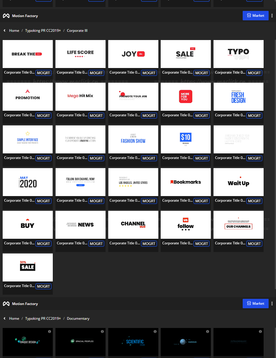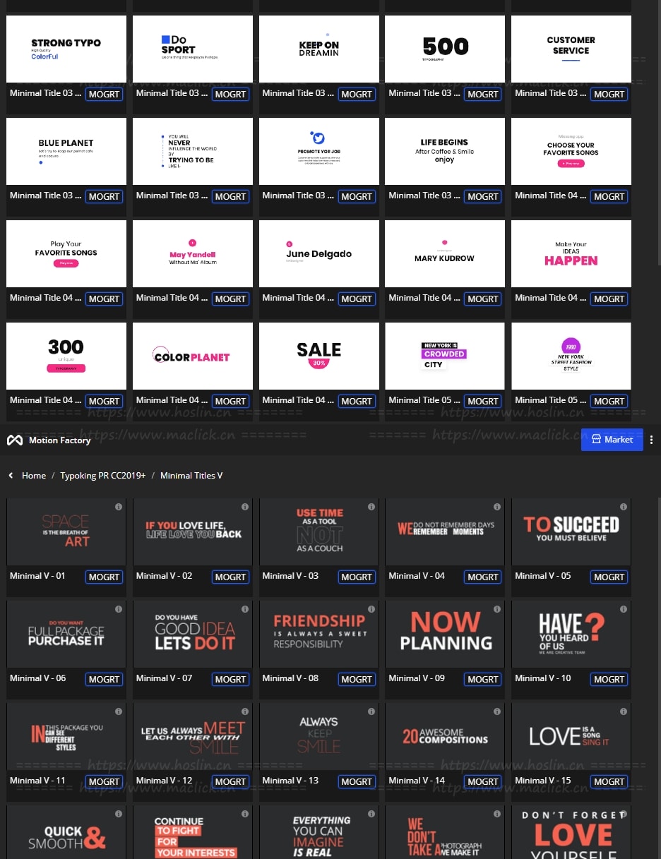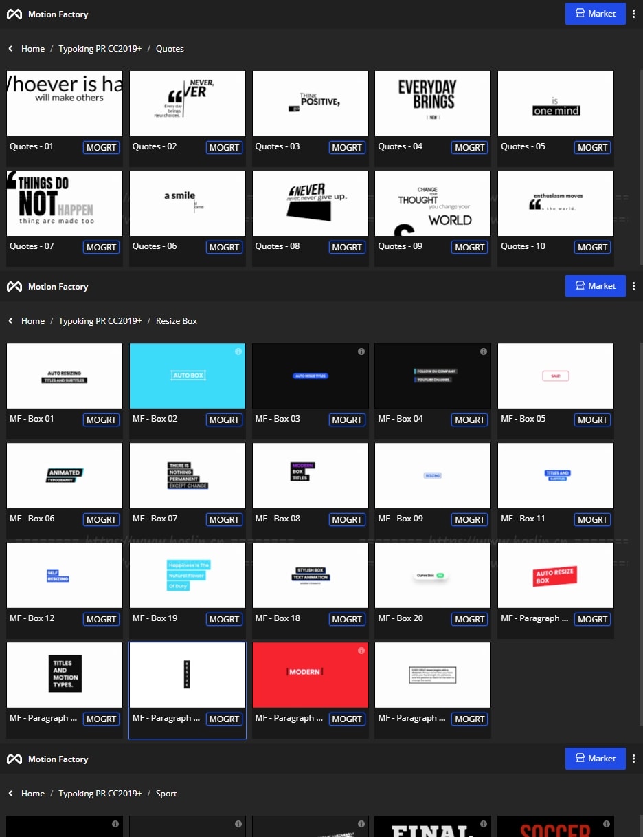拥有27类超过1122个现代新颖时尚精美个性文字标题排版动画。使用Motion Factory脚本扩展预览,需要什么点击即可,能够修改文字内容和颜色等属性,非常方便。支持4K分辨率,无需插件。包含视频教程。