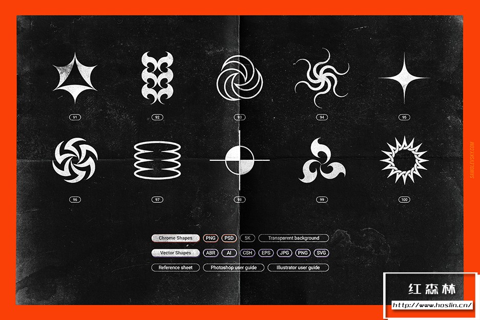 • JPG 文件– 100 个单独的 2D 设计元素(5000×5000px)
