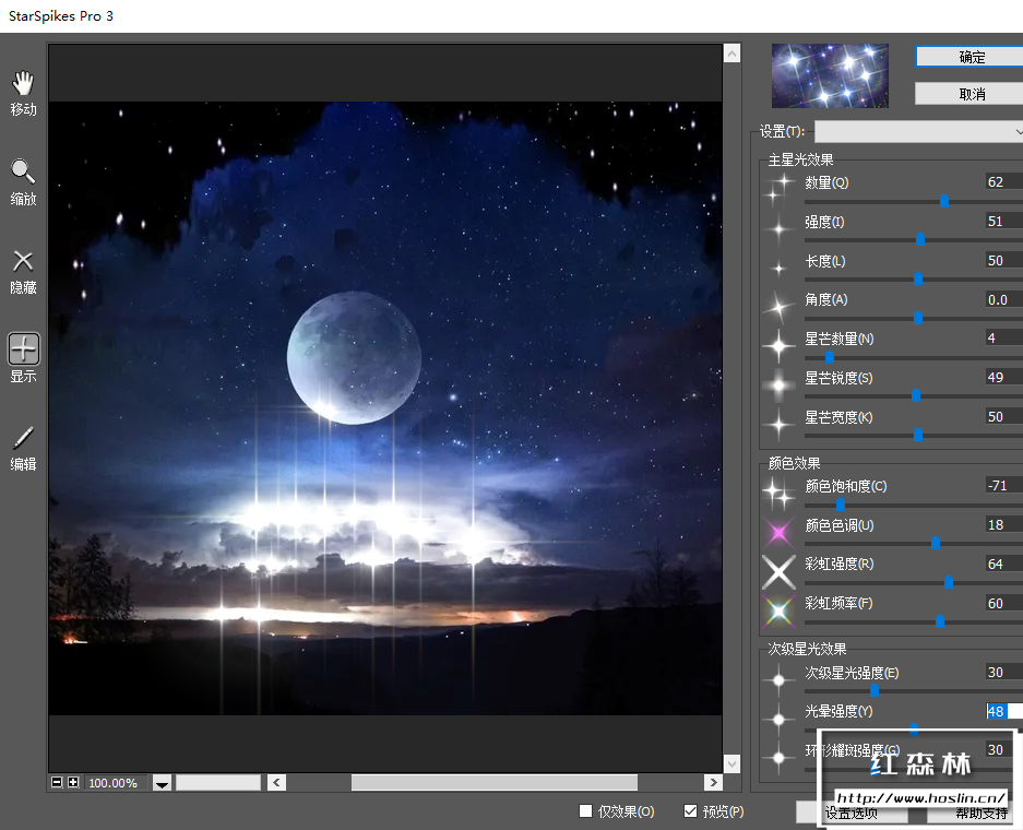 小巧好用的PS星光滤镜特效插件StarSpikes Pro 3.1.2 Win中文汉化版,支持PS CC到2022所有版本。插件只需在PS滤镜菜单下打开,通过调整简单直观的设计参数,即可轻松制作出星芒效果。