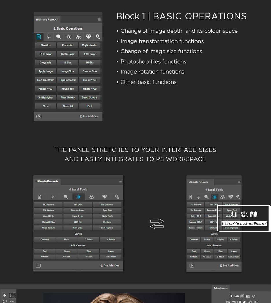 所以 Ultimate Retouch Panel 不仅是开发人员的产品,也是来自世界各地的许多人的产品。这一事实使产品独特、相关且非常灵活。目前,该面板有 200 多个有用的功能。它可以成为您工作流程的重要组成部分,让您远离枯燥的 Photoshop 技术设置,让您有更多时间专注于工作。