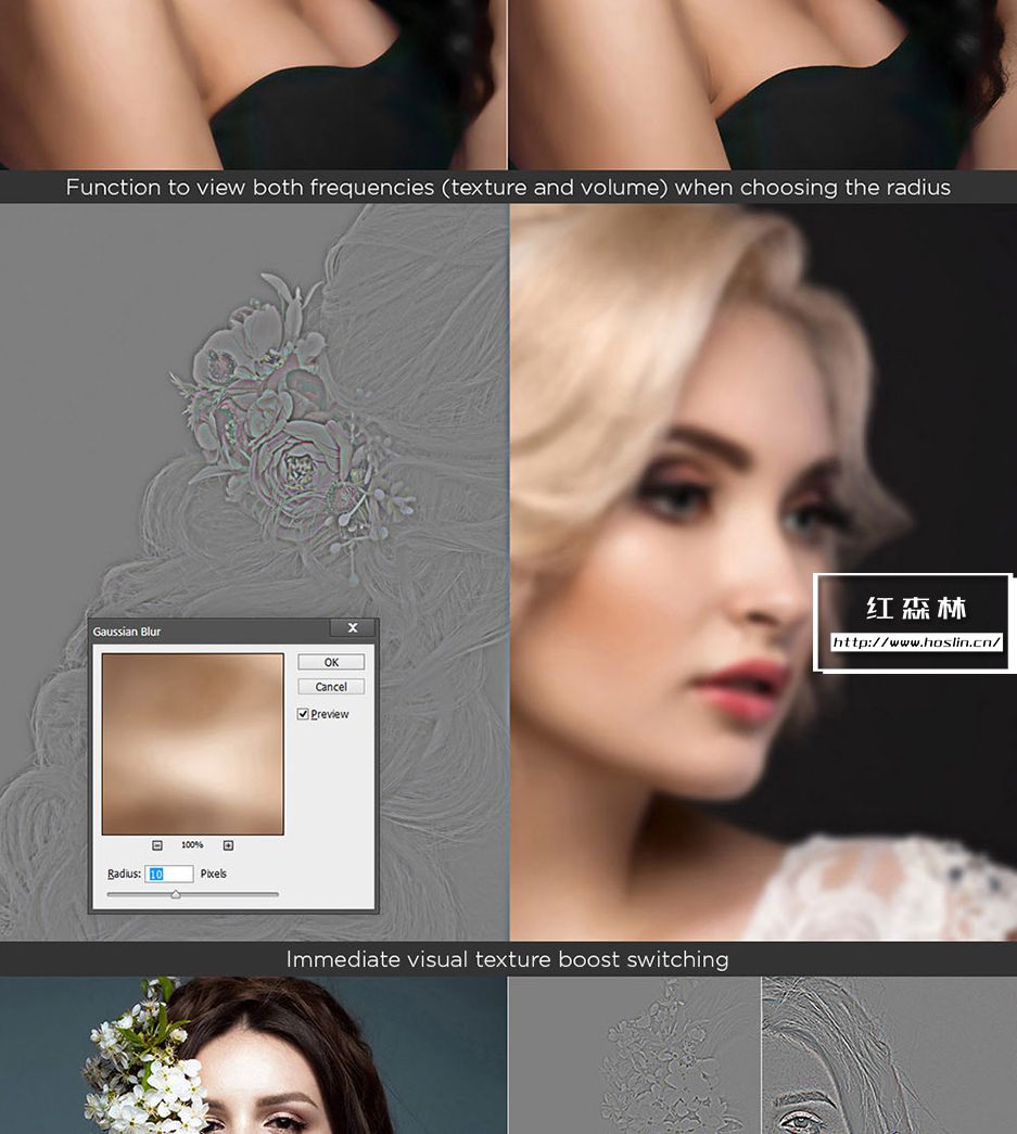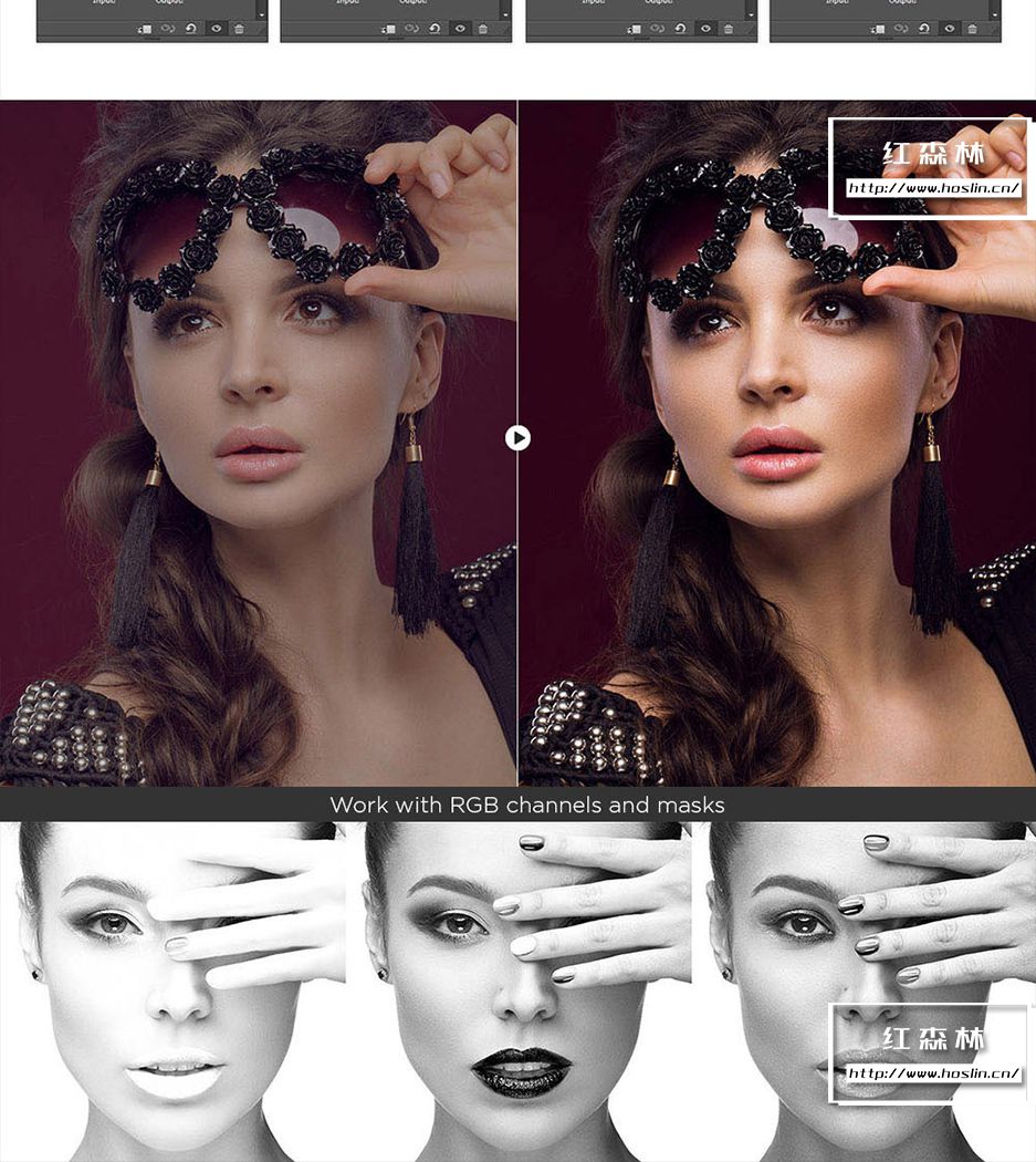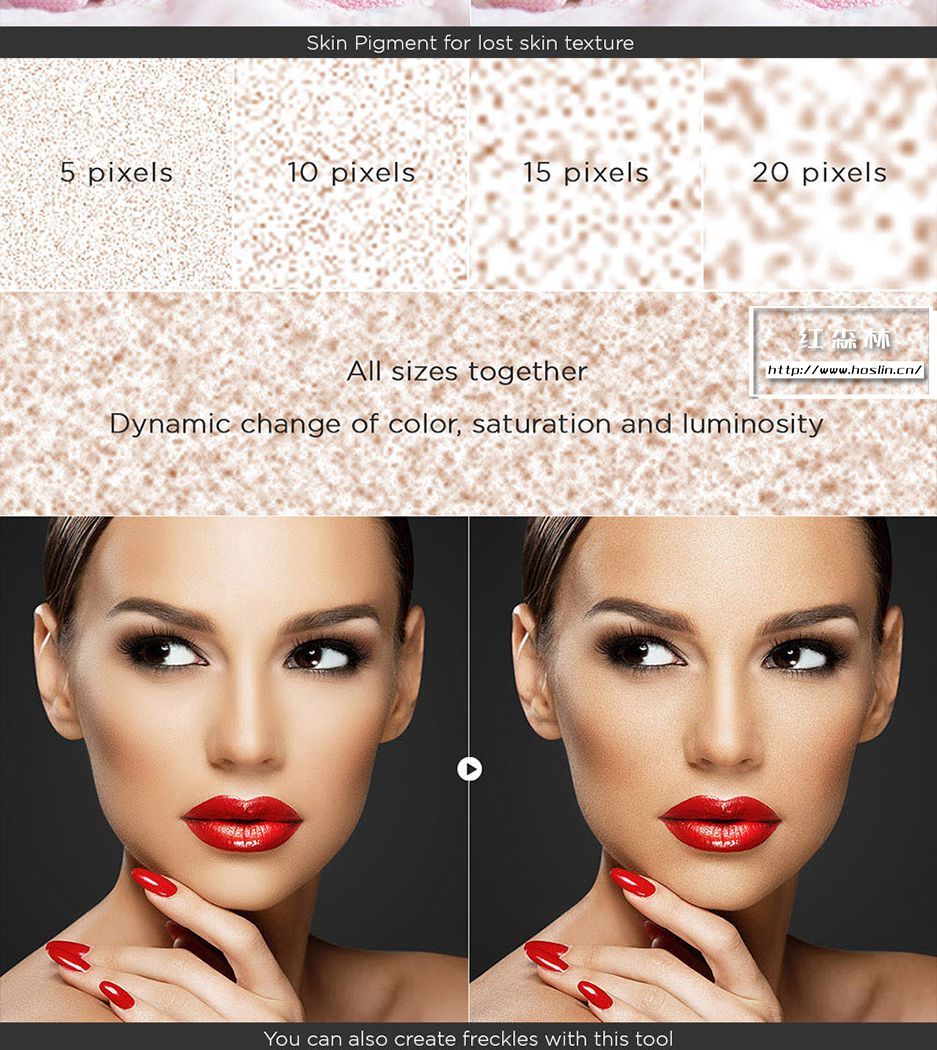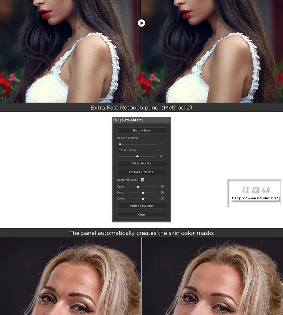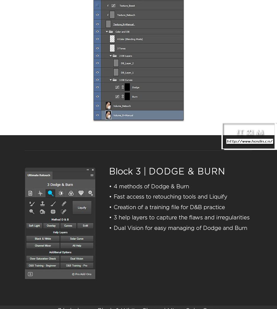 插件主要特点:支持 Photoshop CS6、CC-CC2021、CC2022(MAC 和 WINDOWS)。一个面板包含 200 个功能,7个独特的修饰块,3种快速润饰方法。8 位和 16 位频率分离,65种颜色预设,有20 个自定义按钮,用于您的个人操作。即时视觉纹理增强切换,4种方法用于调整 Dodge & Burn。3个帮助层来捕捉缺陷和不规则之处,双视觉可轻松管理 Dodge 和 Burn。使用 RGB 通道和蒙版,局部和全局高通清晰度,动态不透明度和晕影,多色调效果。