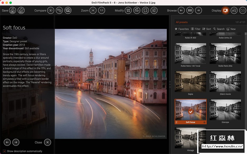 您不仅可以将D.x.O FilmPack 5 用作独立应用程序,又可以用作Adobe Photoshop,AppleAperture的插件,在独立应用程序模式下,您只需单击几下即可直接处理TIFF,JPEG和RAW图像,而在插件模式下,您可以遵循常规处理工作流程,同时又丰富Adobe或Apple解决方案。