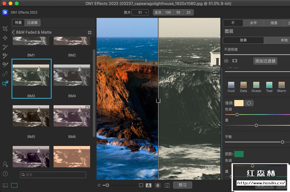 ON1 Effects 2022 是由ON1公司推出的一款功能强大的照片滤镜调色软件,该软件采用最新的一代的RAW档高速处理引擎,可以完美兼容目前主流计算机架构,并且软件内置一个超大特效滤镜库,里面包含了各式各样的预设、滤镜、LUT、纹理、边框等,例如B&W、HDR外观、动态对比度、镜头模糊(倾斜移位)、发光、胶片外观、分割色调等,你知道的和不知道的这里全都有。