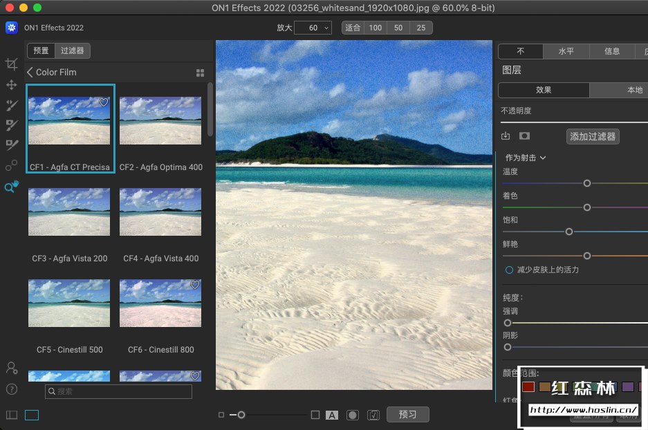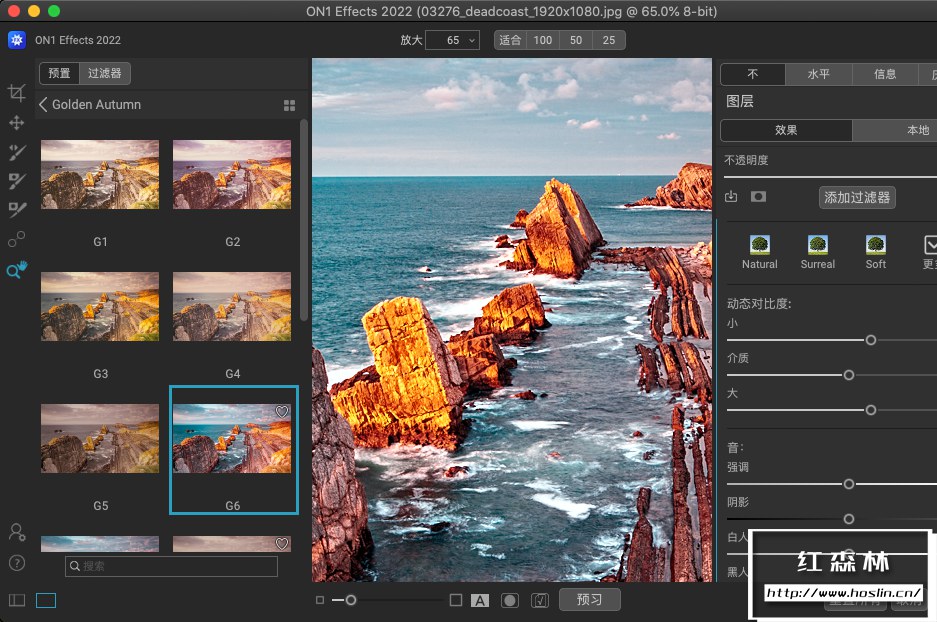 此外,在ON1 Effects 2022 中你还可以对其进行任意组合、融合及自定义样式,从而让用户能够更加智能化的进行照片处理,而且这种方法对于用户而言非常简单,只需用户将图片拖拽至操作简单,然后根据自己的喜好添加滤镜即可。另外相比之前的版本,在2022 版本中ON1公司对RAW处理引擎进行了大幅度升级优化,同时还加入了全新的HDR功能和全景照片合成功能,以及对照片选区部分和背景部分进行了精确的调整。
