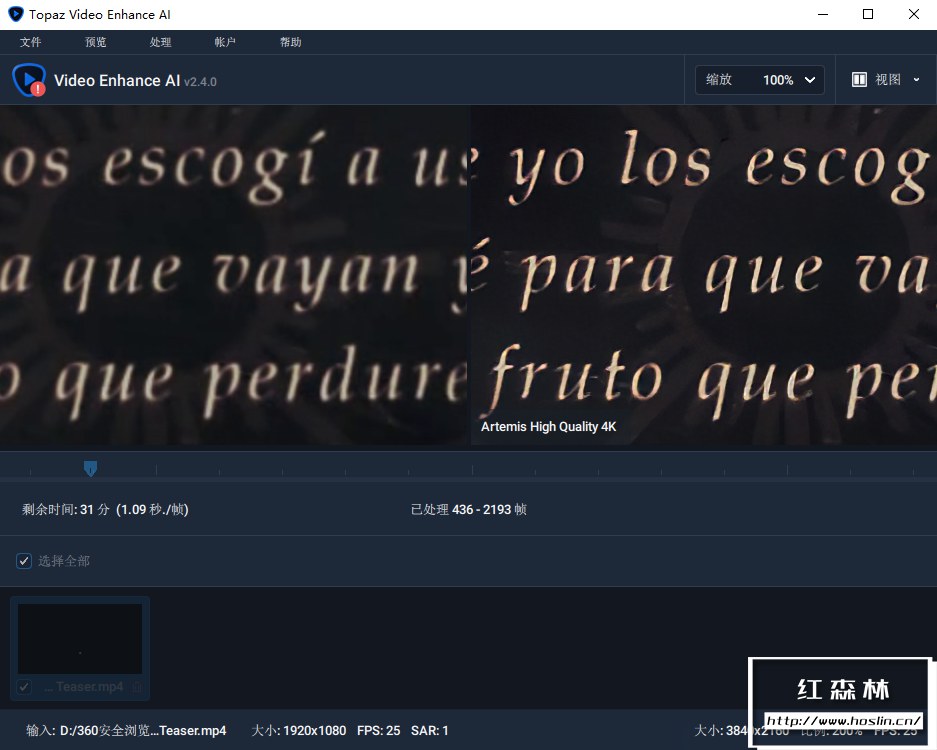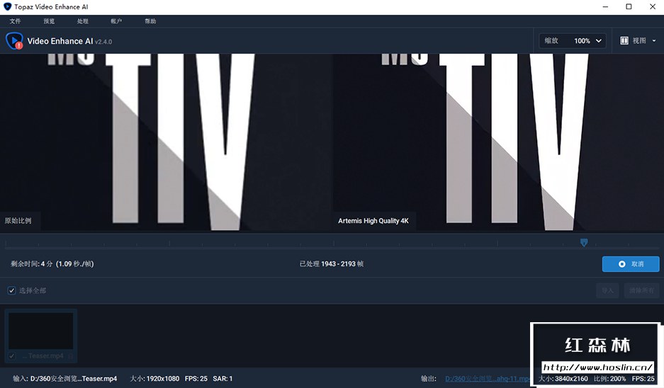 一款非常好用的视频分辨率放大专业软件 Topaz Video Enhance AI,可以通过这款软件将视频的分辨率进行自定义调节,最高能够将其放大至8K分辨率,并提供真实的细节和动作一致性,放大后的视频不会出现模糊的情况。软件通过对数以千计的视频进行训练测试,并结合来自多个输入视频帧的信息才得到如此强大的效果。