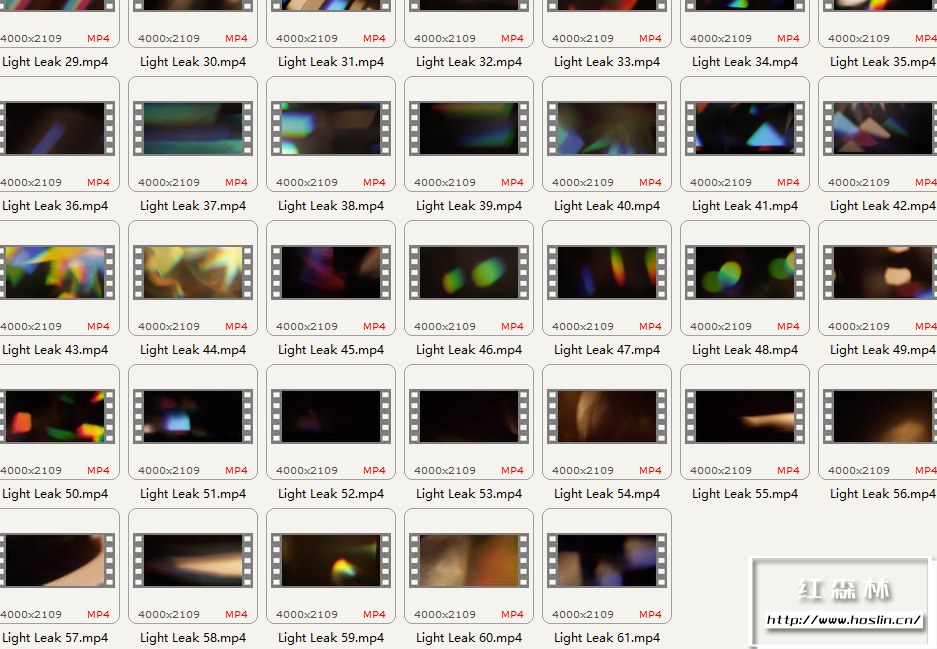 Light Leaks 提供61个镜头漏光耀眼炫光闪烁叠加动画4K视频素材,没有透明通道,可使用混合模式重合叠加效果。