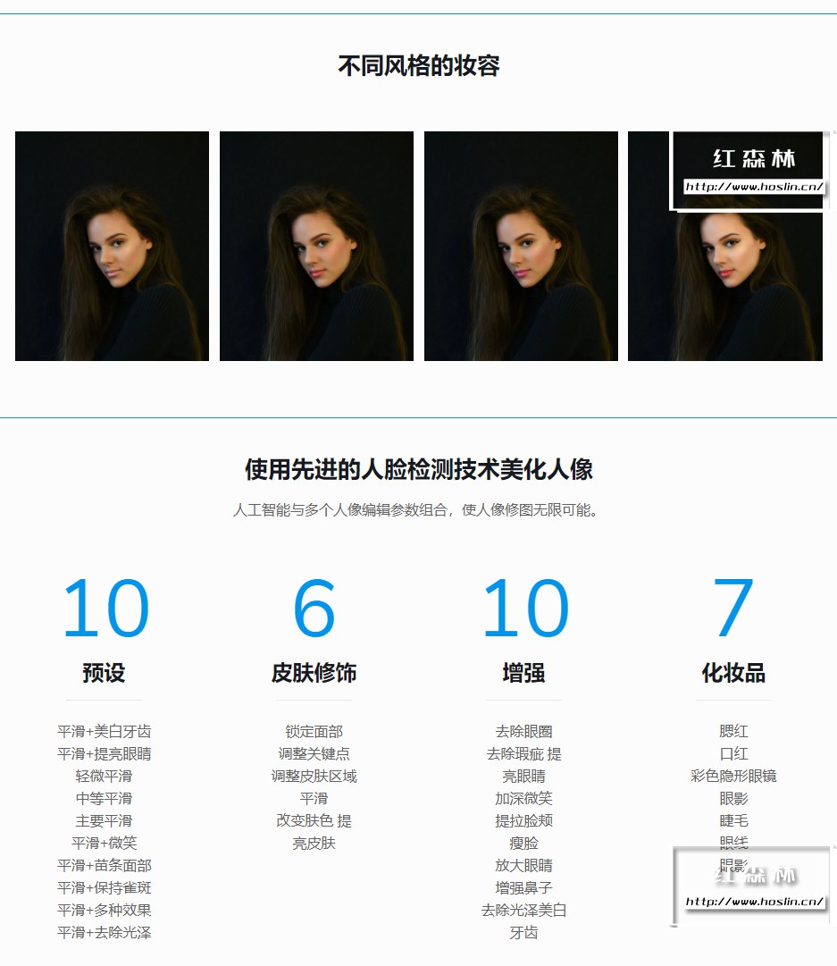 - 人像增强:您可以进行肖像增强,如眼圈、去除瑕疵和油光、提亮眼睛、加深微笑、提拉脸颊、瘦脸、扩大眼睛、增强鼻子和美白牙齿。