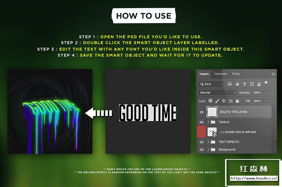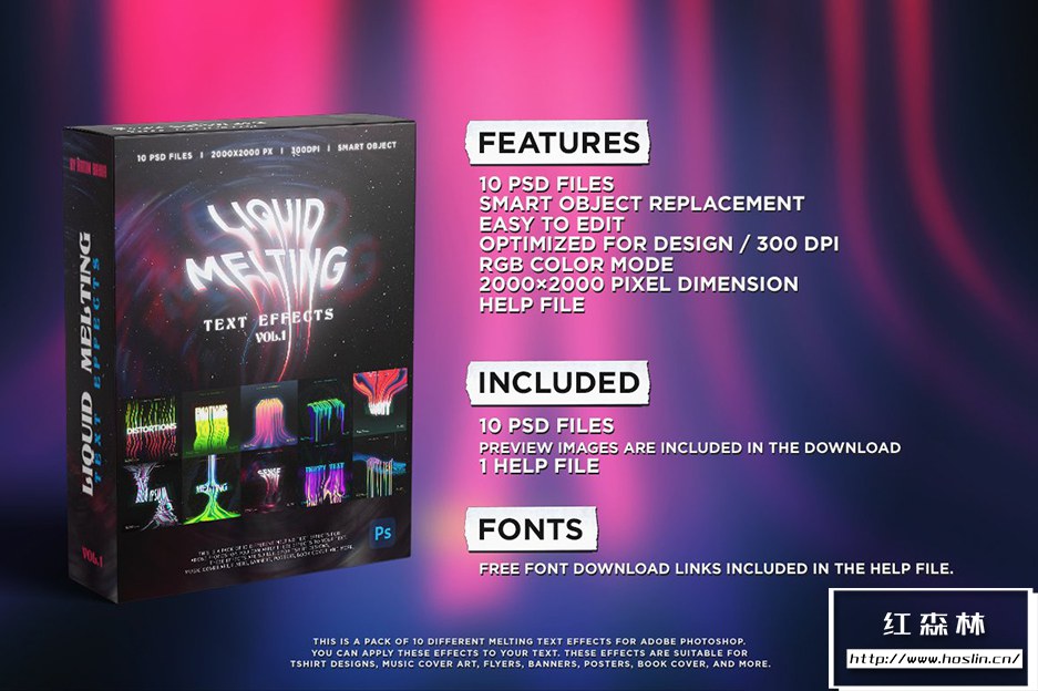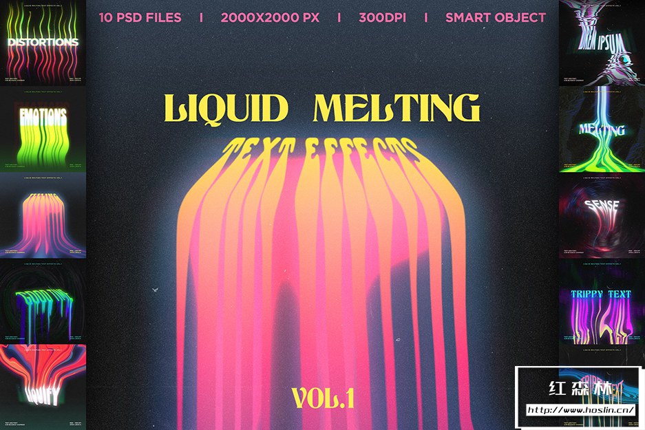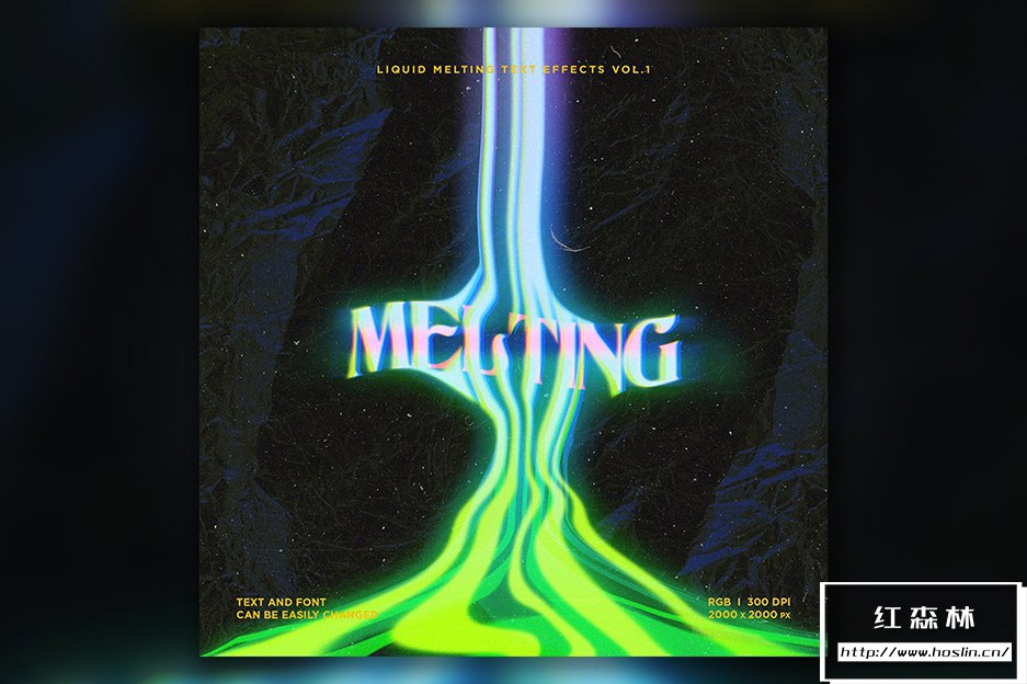 Liquid Melting Text effects Vol.1 这是一套用于 Adobe Photoshop 的 10 种不同的熔化文本效果。您可以将这些效果应用于您的文本。这些效果适用于 T 恤设计、音乐封面艺术、传单、横幅、海报、书籍封面等。