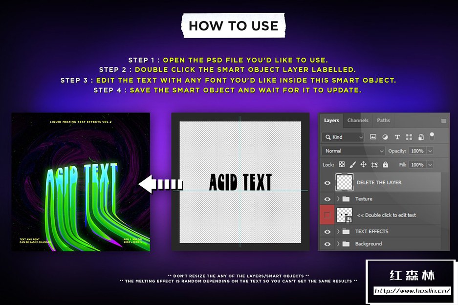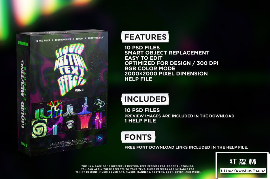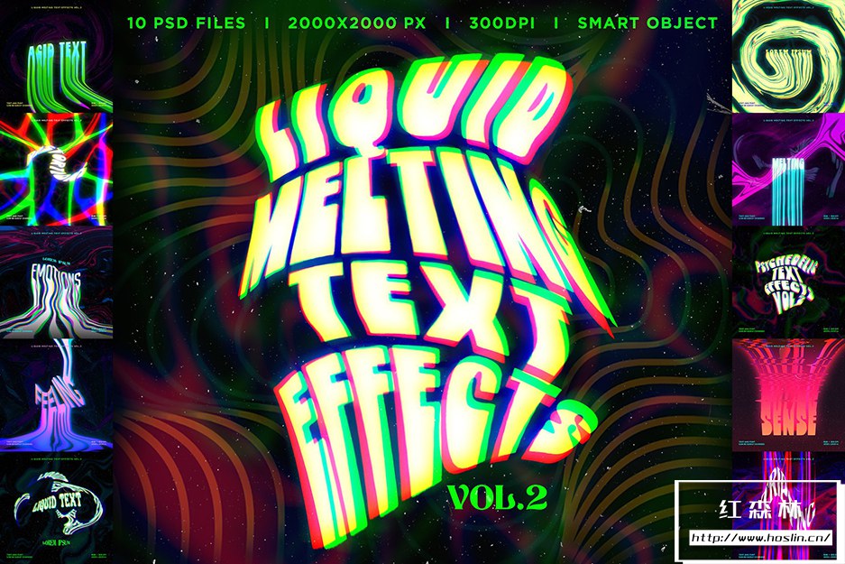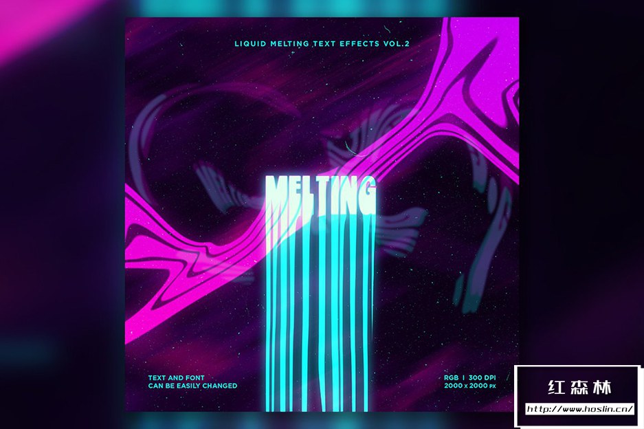 Liquid Melting Text effects Vol.2 这是一套用于 Adobe Photoshop 的 10 种不同的熔化文本效果。您可以将这些效果应用于您的文本。这些效果适用于 T 恤设计、音乐封面艺术、传单、横幅、海报、书籍封面等。