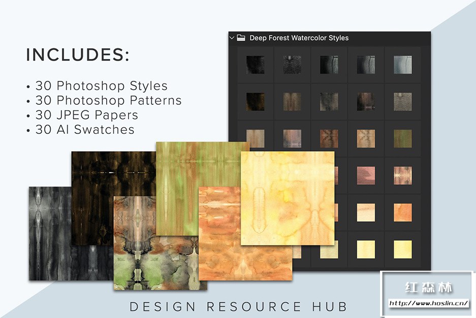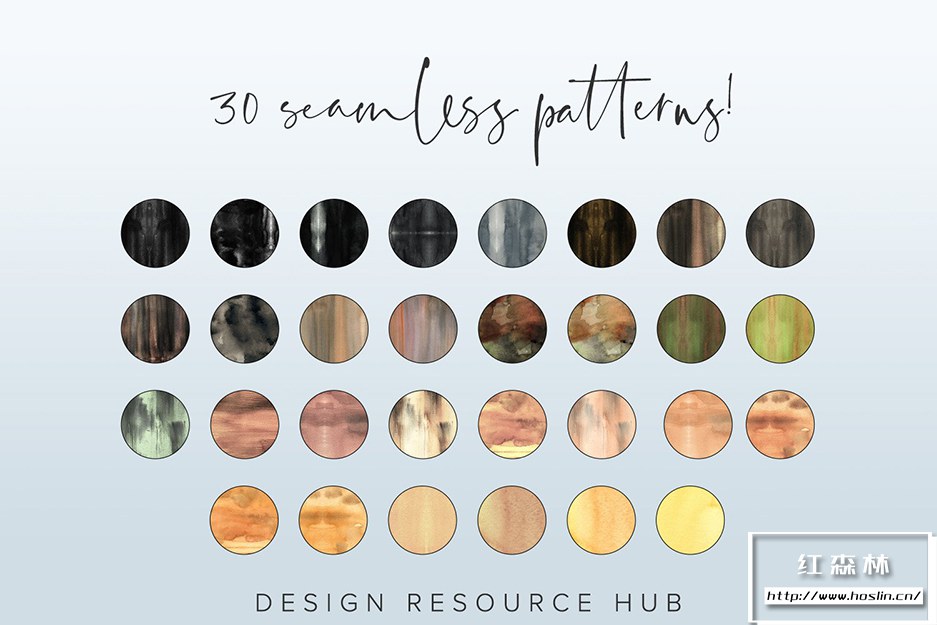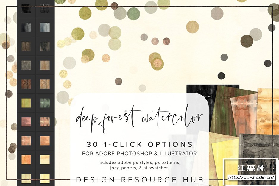 下载后,您可以在 Adobe Photoshop 中导入 .pat 和 .asl 文件,并在 Adobe Illustrator 中加载 .ai 色板文件。也可以根据需要使用 jpeg 纸质文件!