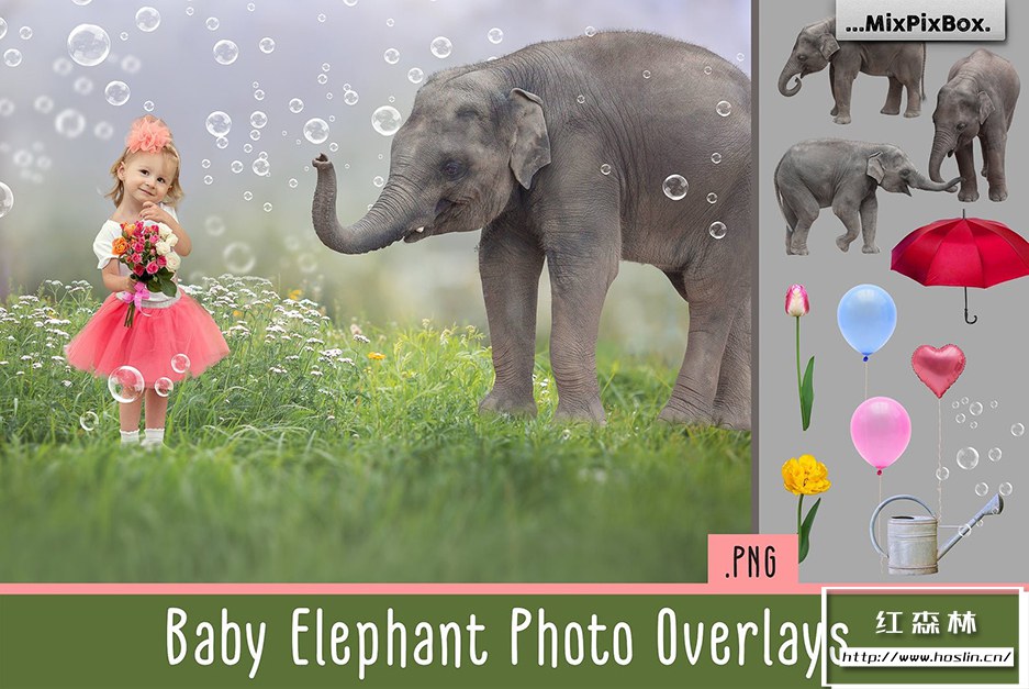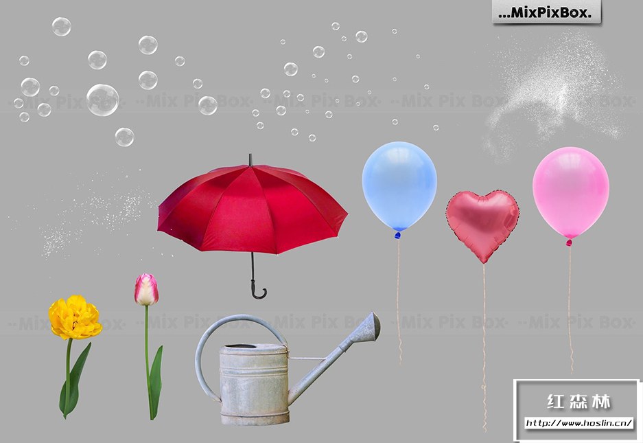 - 11(花,伞,气球,水溅,气泡)-具有透明背景的png图像