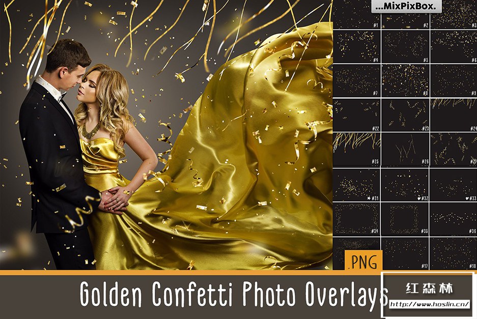 创造五颜六色的五彩纸屑雨来营造欢乐的画面氛围是完美的吗?没问题!使用这 36 张带有闪亮五彩纸屑的彩色图片,并将它们放在您的照片上。在软件兼容和高分辨率的 PNG 文件中,金色的漩涡在透明的背景下飘动,因此您无需购买任何东西,只需添加这种喧嚣。