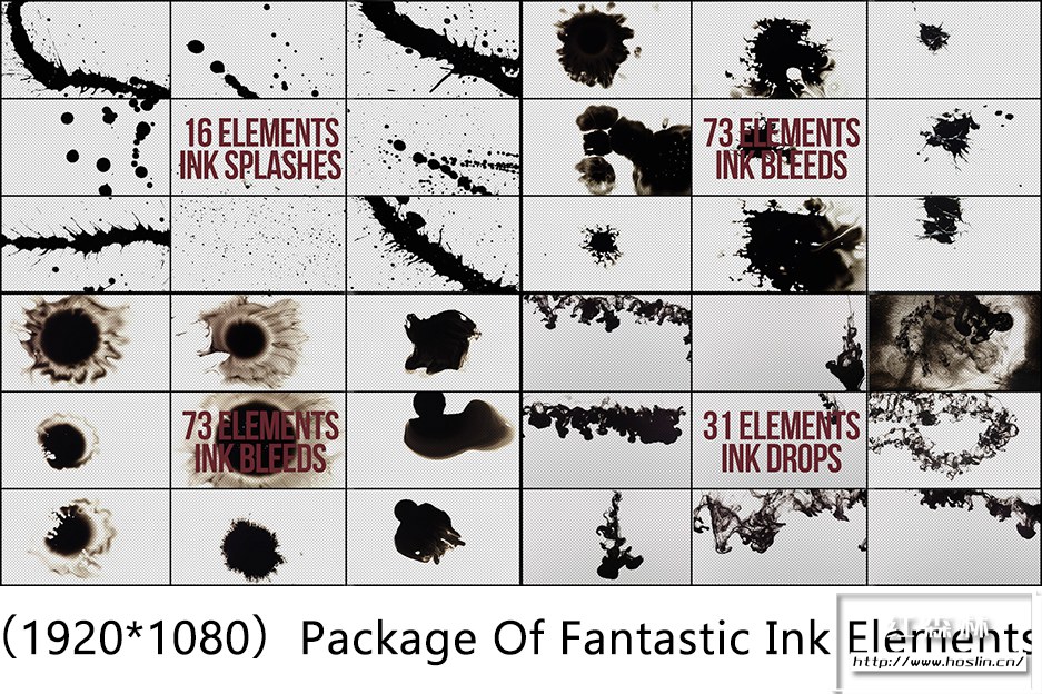 Package Of Fantastic Ink Elements 包含73个墨水渗出,31个墨水滴在水中和16个墨水飞溅。每个动画元素具有不同的形状和样式,您可以将这些黑白视频剪辑用作动态图形中的合成元素,也可以用作具有特殊视觉效果的有机背景,您还可以更改颜色并将其用作血液喷雾。这些视频具有全高清分辨率。