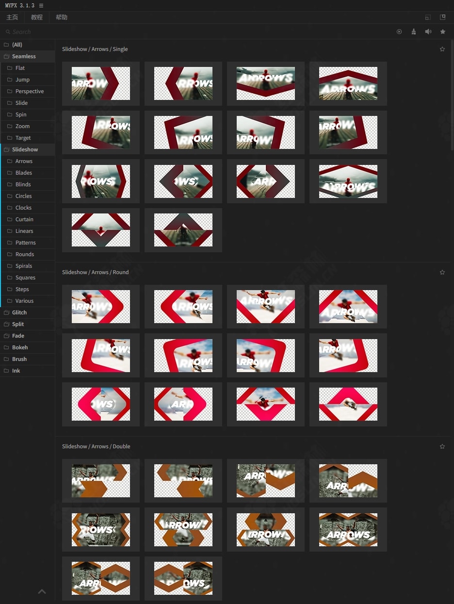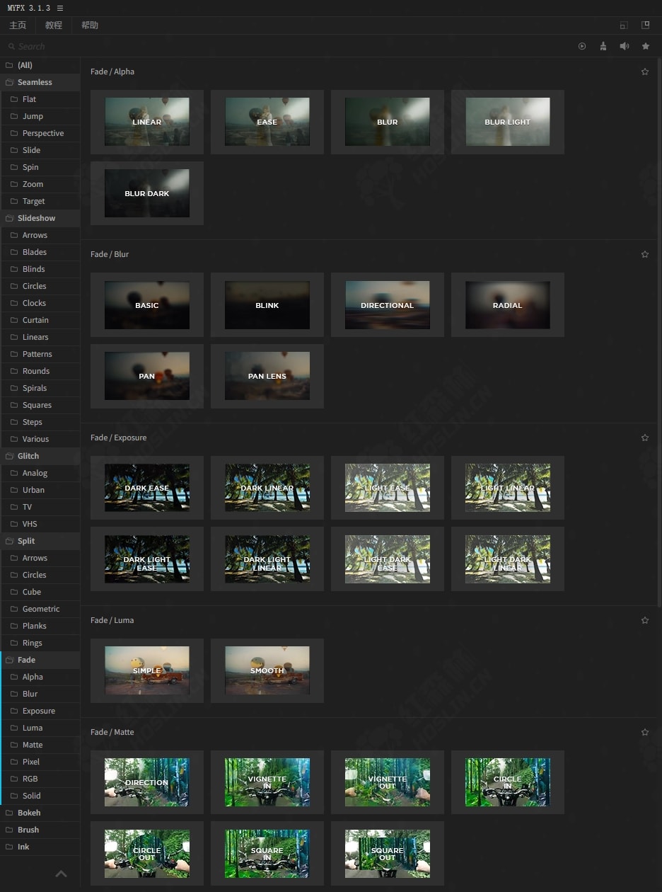 • 40个淡入淡出过渡