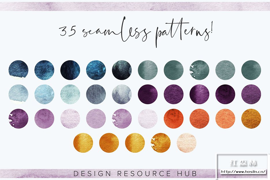 下载后,您可以在 Adobe Photoshop 中导入 .pat 和 .asl 文件,并在 Adobe Illustrator 中加载 .ai 色板文件。也可以根据需要使用 jpeg 纸质文件!