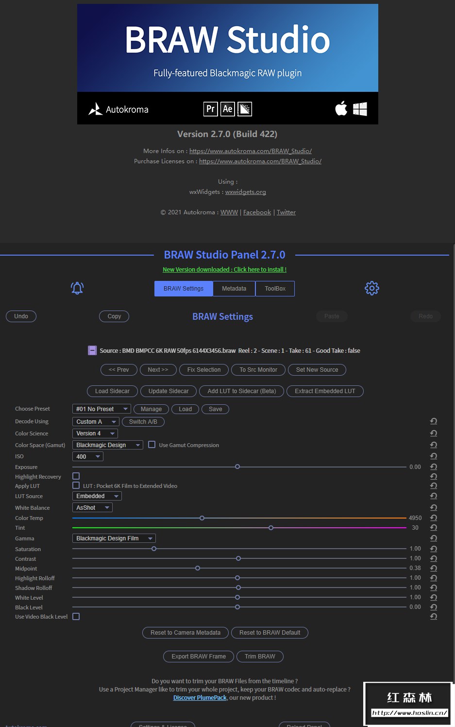 BRAW Studio是一款适用于Adobe Premiere Pro和Media Encoder的全新Blackmagic RAW(.BRAW)素材导入器!使用这个插件可以将Blackmagic RAW(.braw格式)的素材直接导入到After Effects, Premiere Pro 和 Media Encoder软件中,还可以进行一些参数的设置。